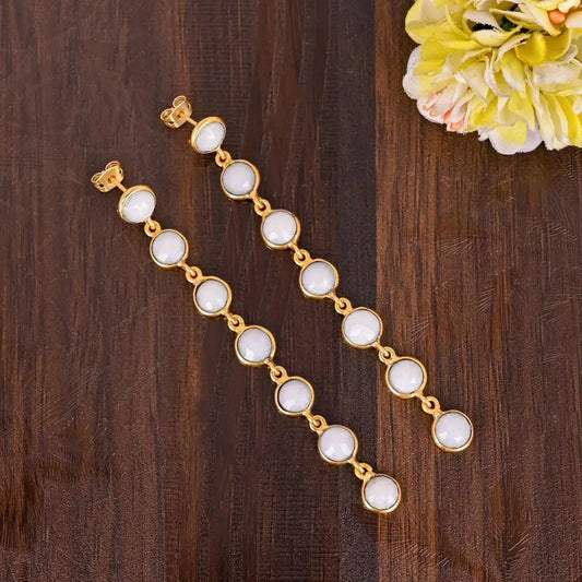 Rainbow Moonstone Long Drop Earrings for Women – Gold Plated Brass Dangle Earrings, Handmade Boho Statement Gemstone Jewelry