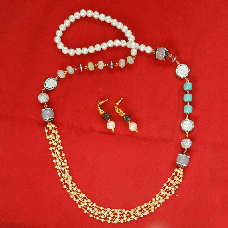 2 Pcs Exclusive Beaded Designer Necklace Earring Set Fashion Jewelry