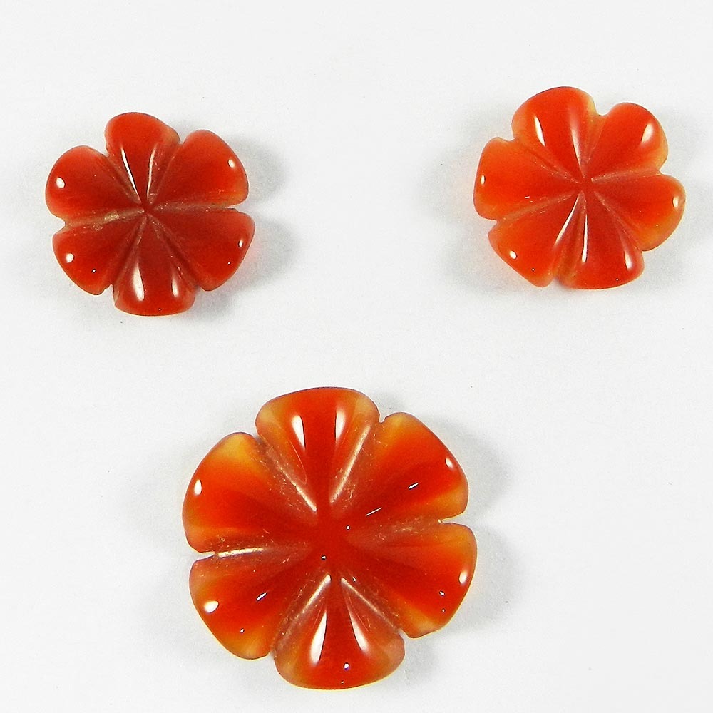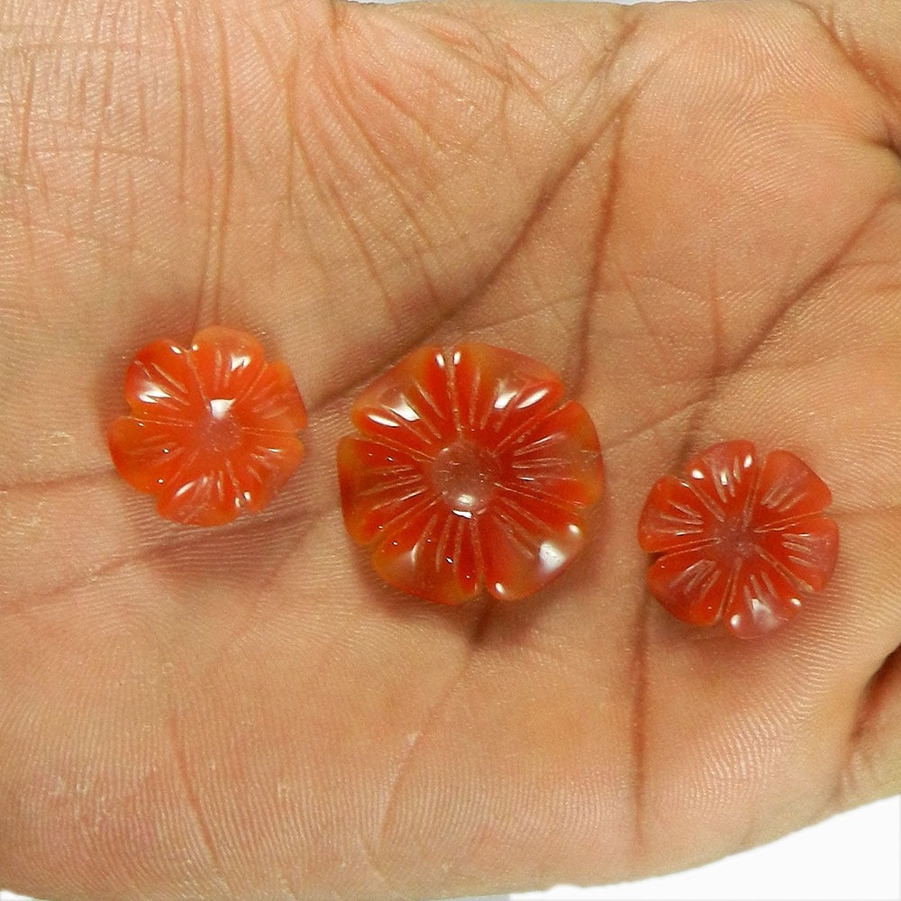 3 Pcs Red Onyx Flower Shape Carving IG4021