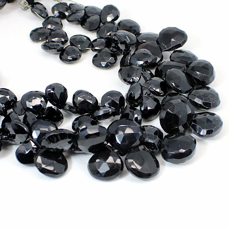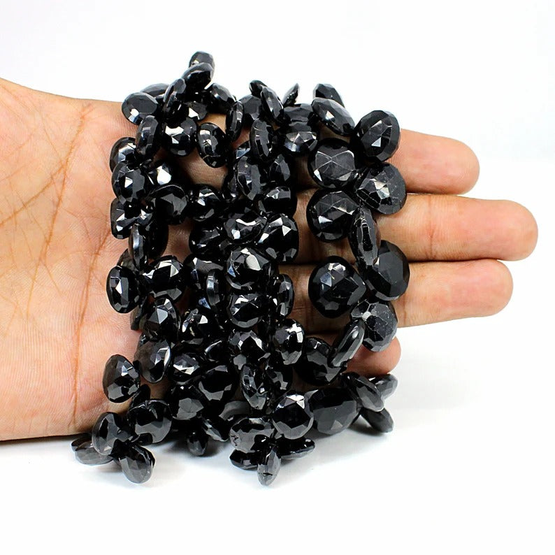 8.5 INCH Black Onyx Beads Strand-Heart Briolette Beads