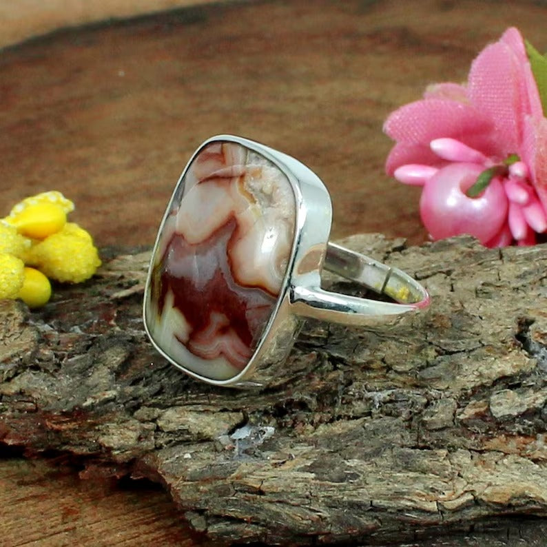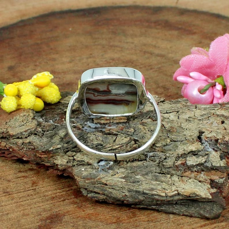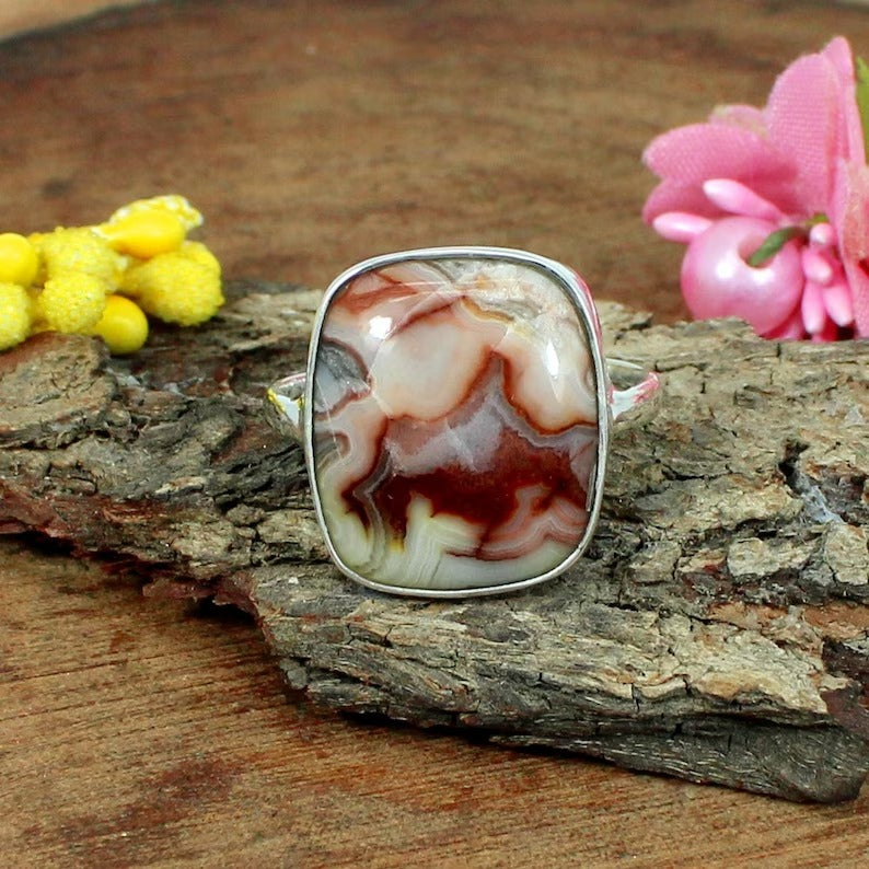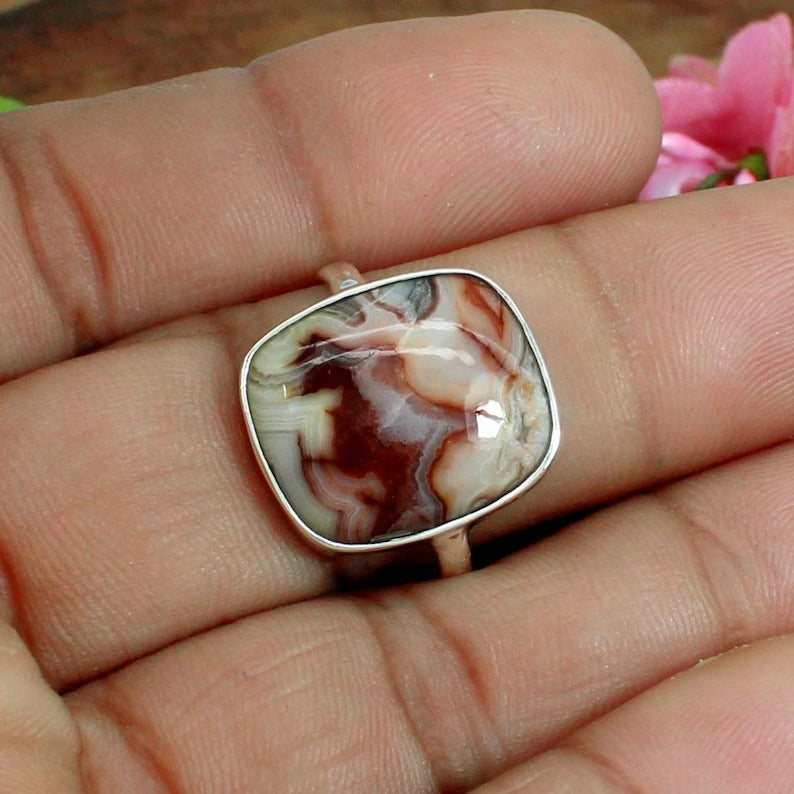 92.5 Sterling Silver Crazy Lace Agate Ring