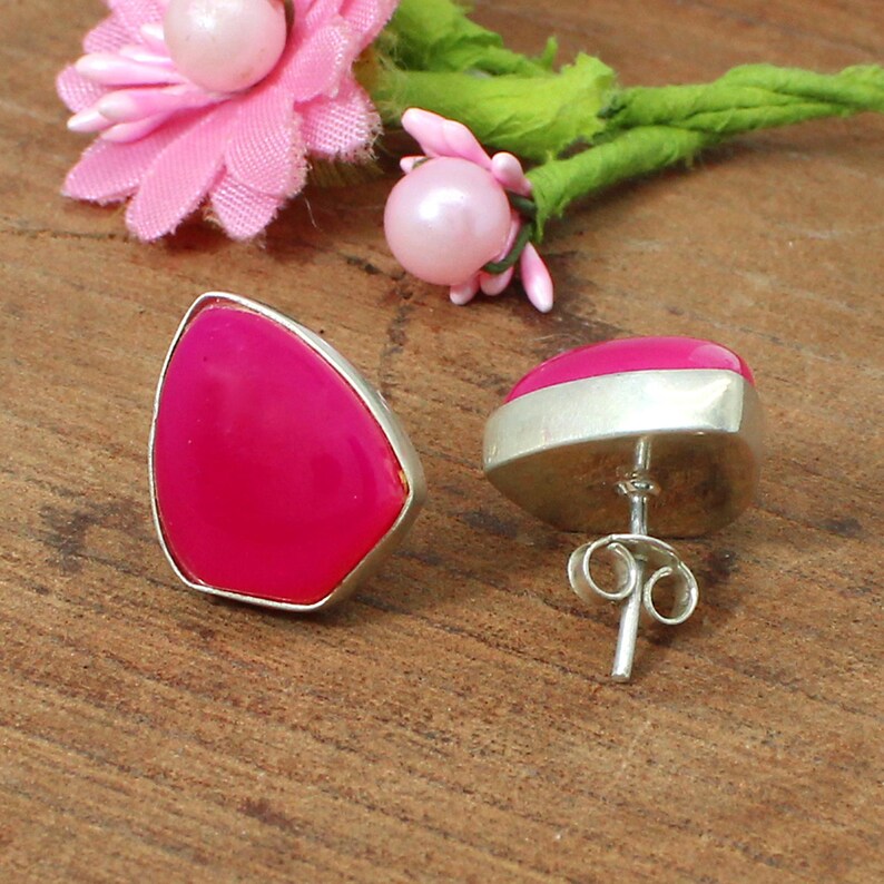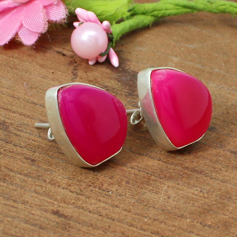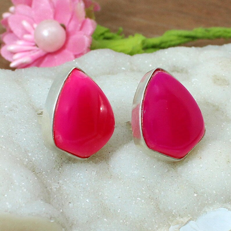 92.5 Sterling Silver Fuchsia Chalcedony Gemstone Earrings