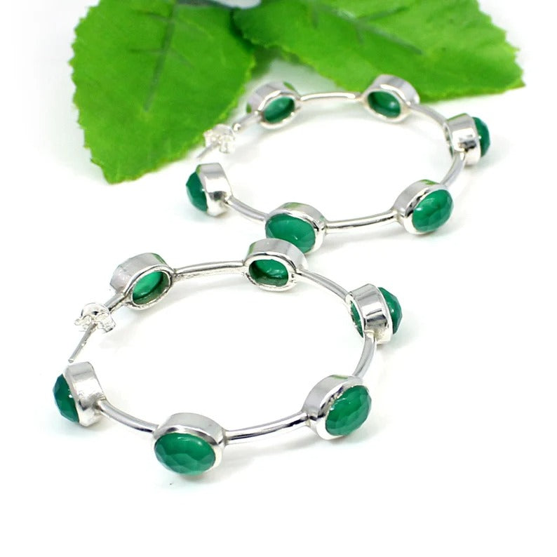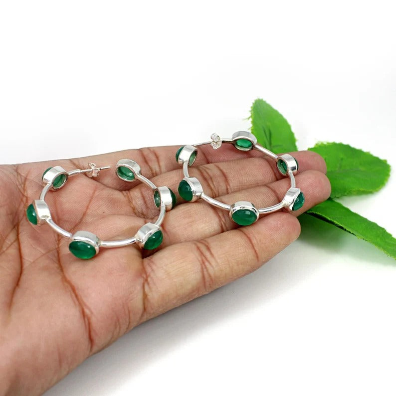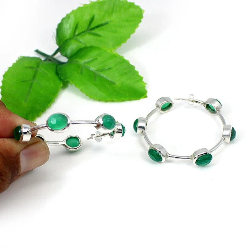 92.5 Sterling Silver Green Onyx Gemstone Earrings