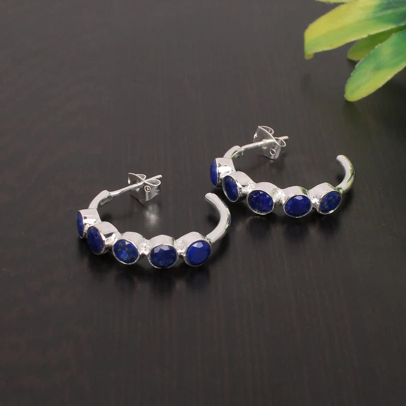 92.5 Sterling Silver Lapis Lazuli Gemstone Hoops Earrings