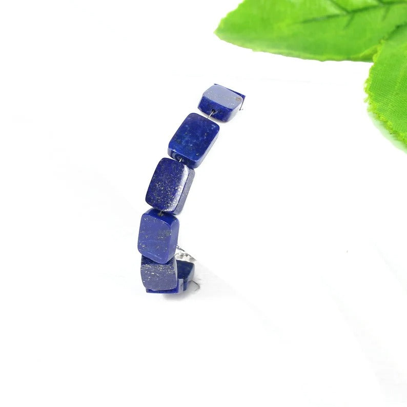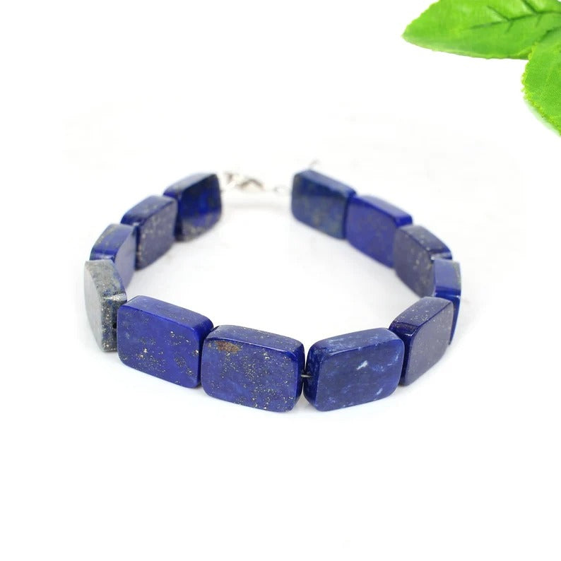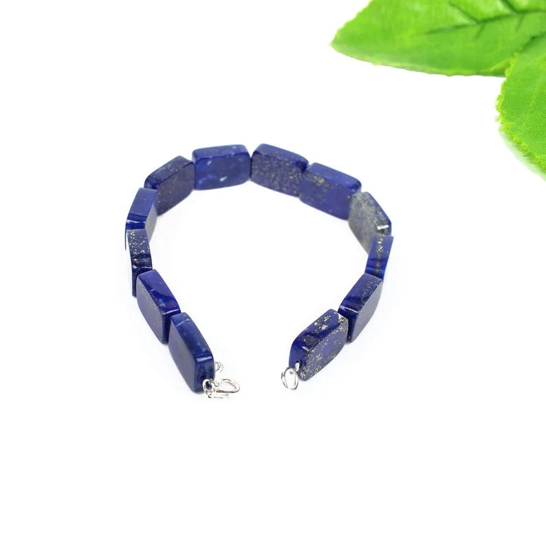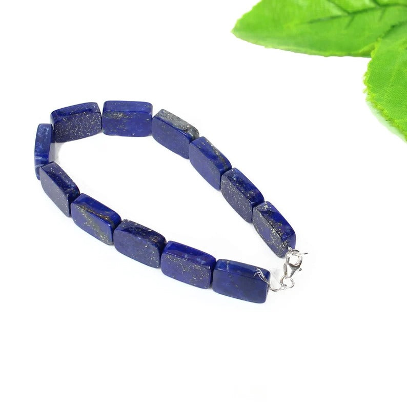92.5 Sterling Silver Natural Lapis Gemstone Cube Bracelet