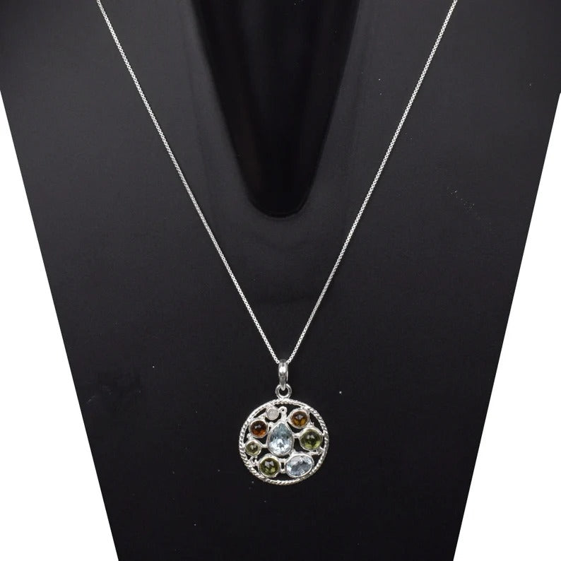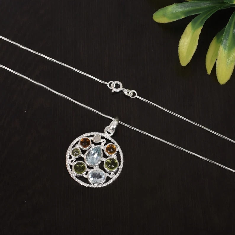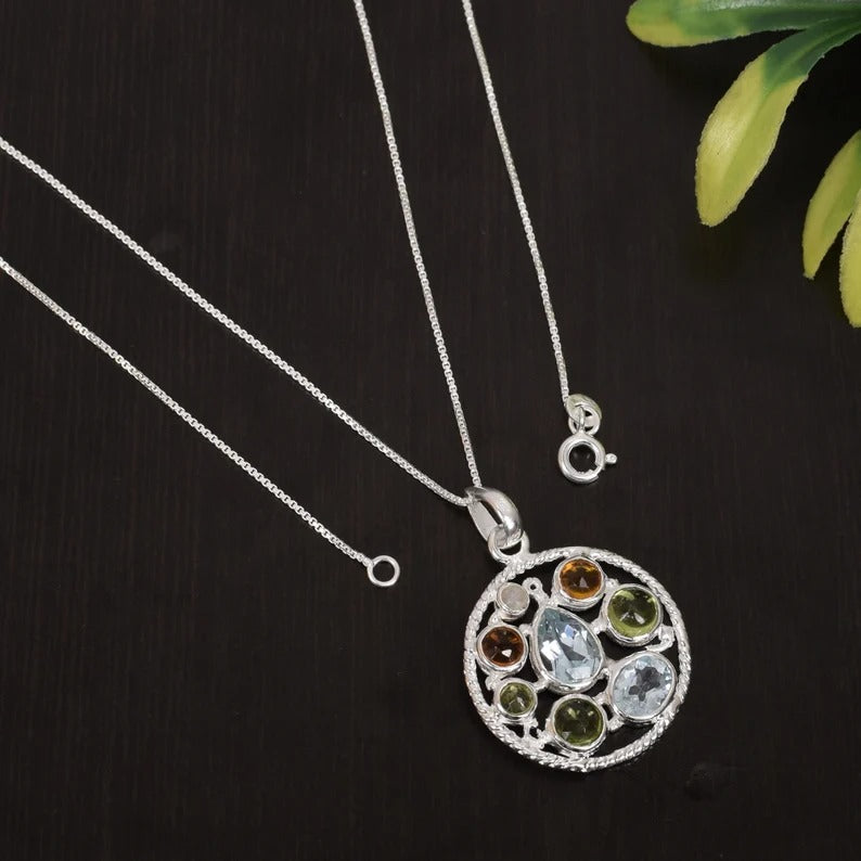 92.5 Sterling Silver Panch Ratan Gemstone Necklace
