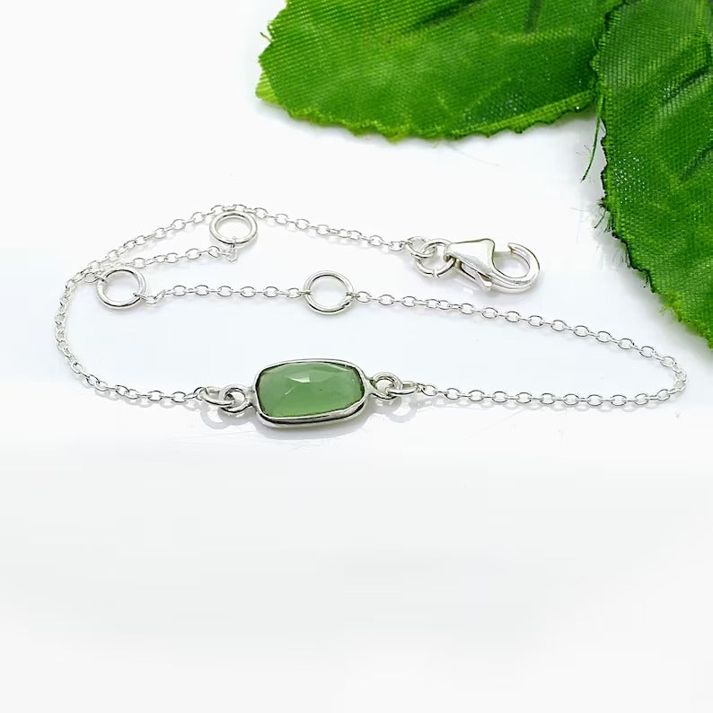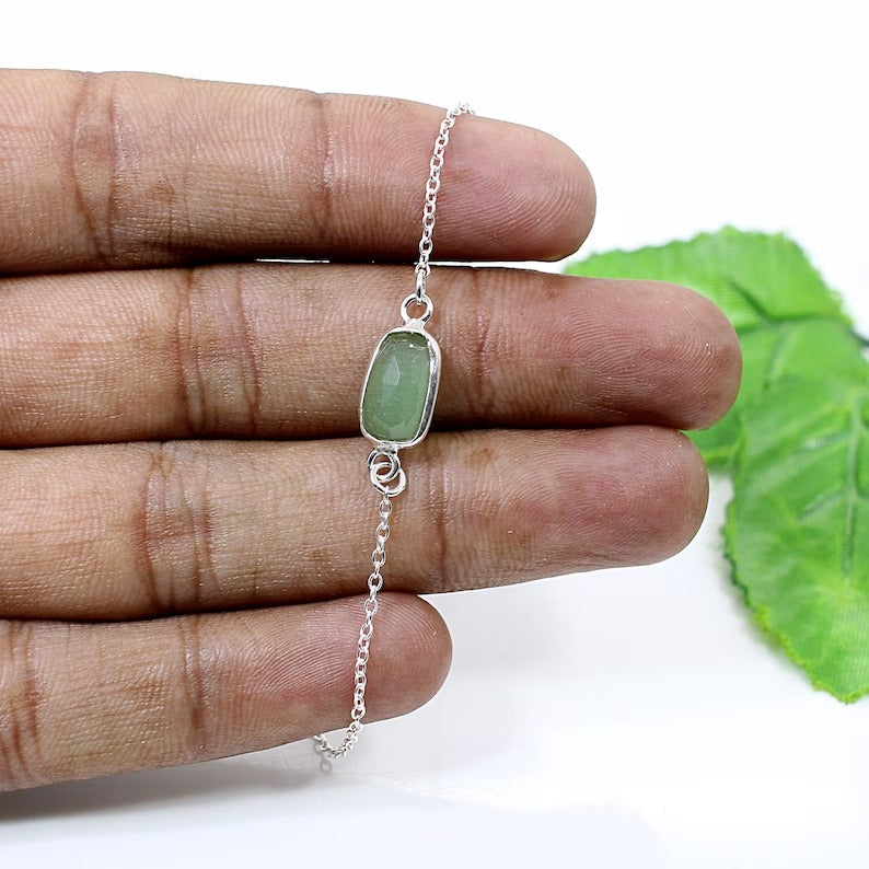 92.5 Sterling Silver Prehnite Gemstone Bracelet