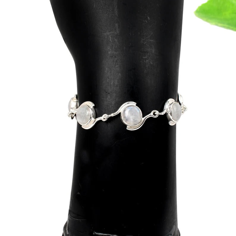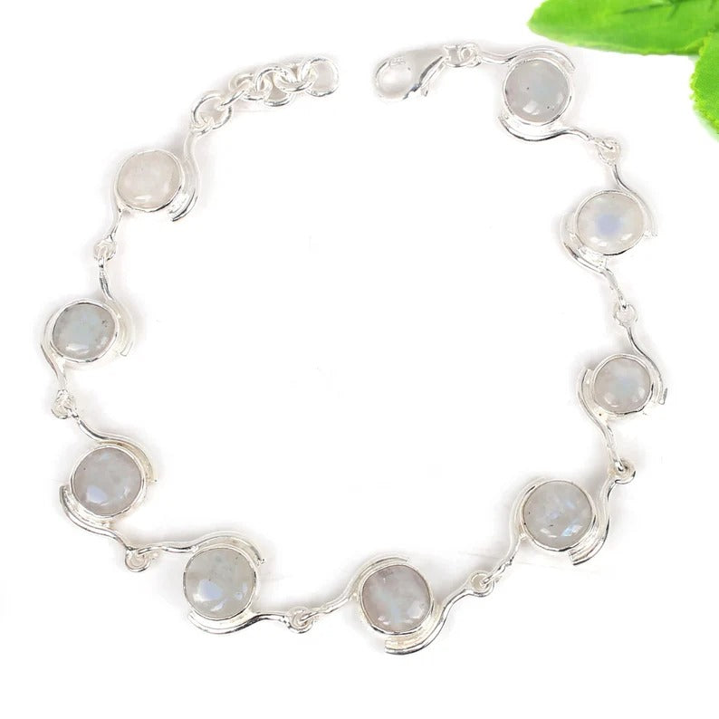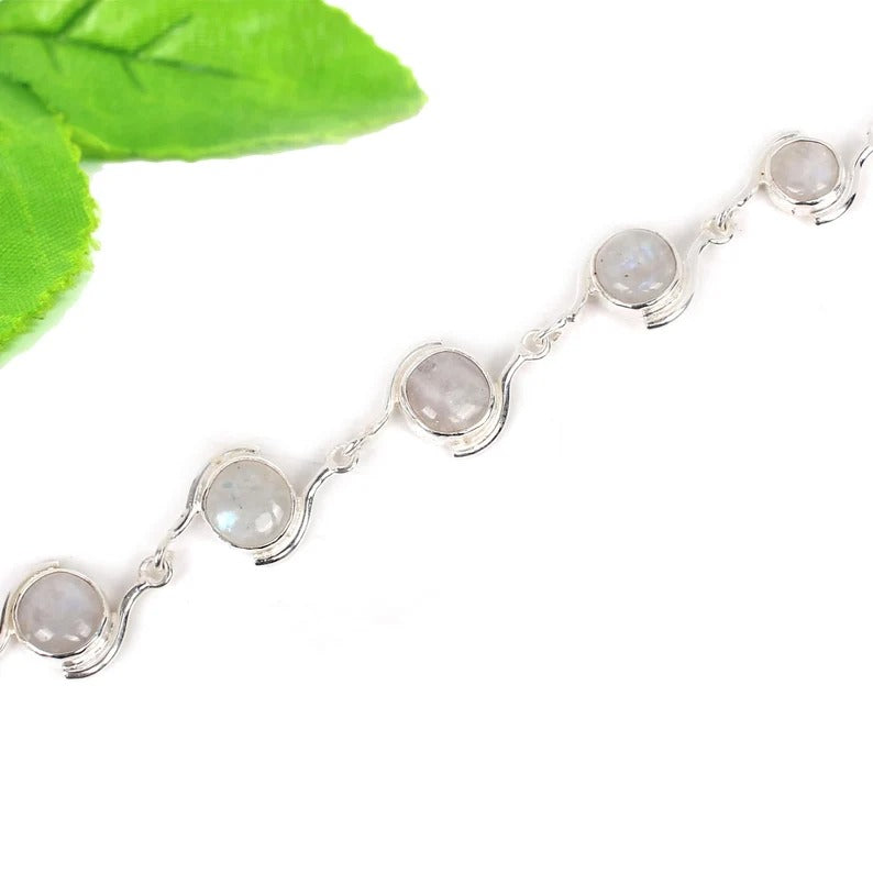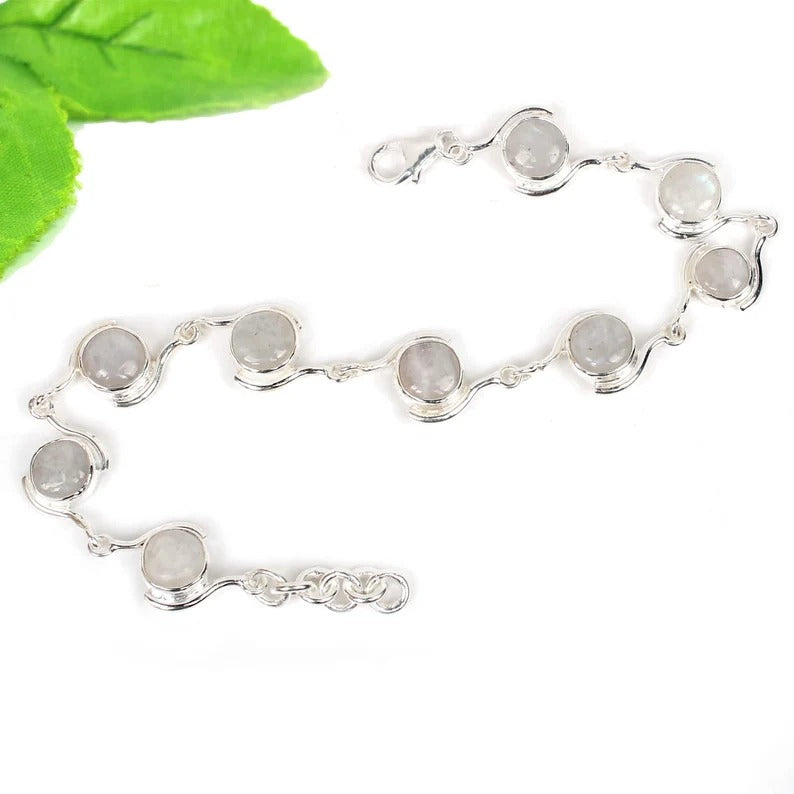 92.5 Sterling Silver Rainbow Moonstone Gemstone Bracelet