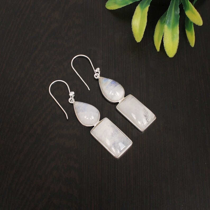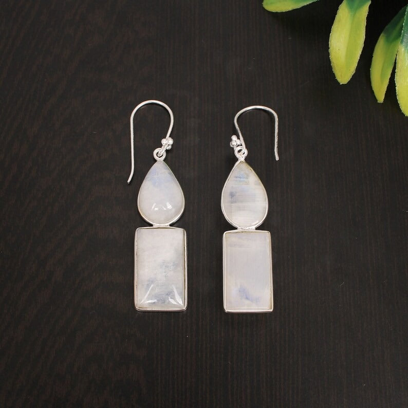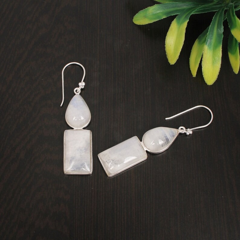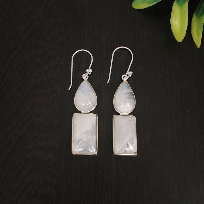 92.5 Sterling Silver Rainbow Moonstone Gemstone Earrings