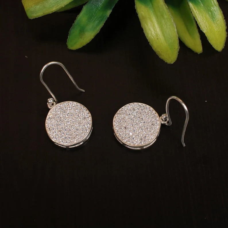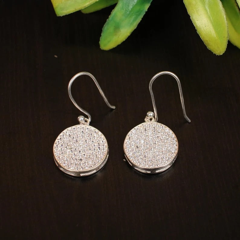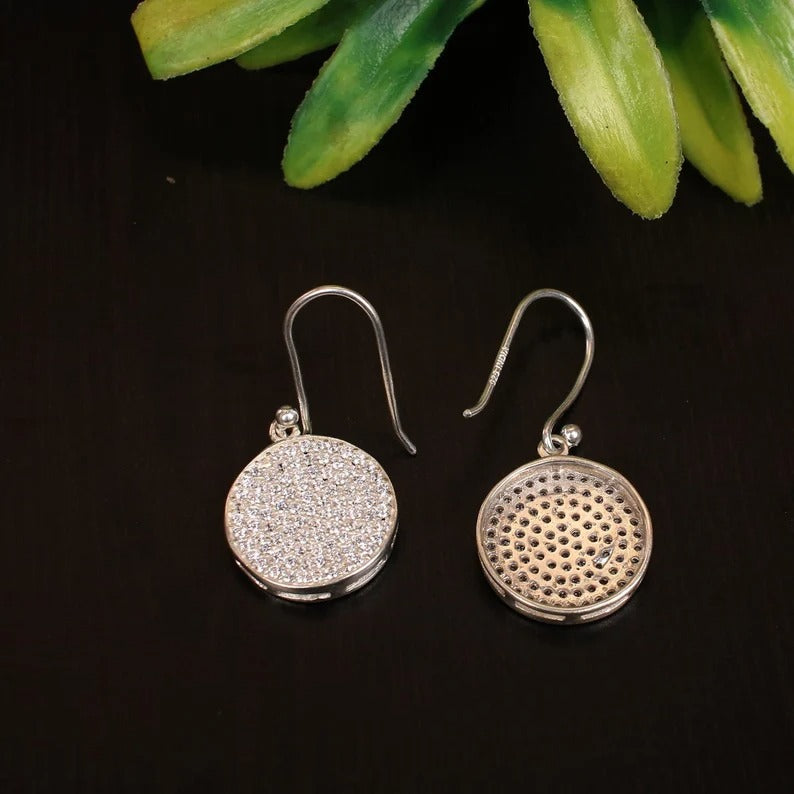 92.5 Sterling Silver White CZ Gemstone Circle Earrings