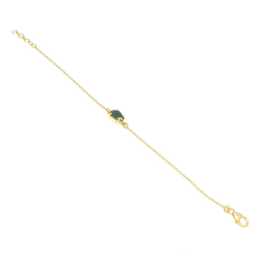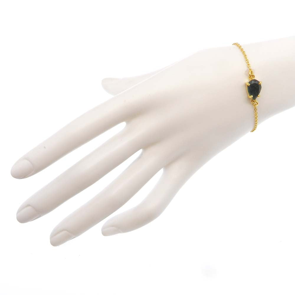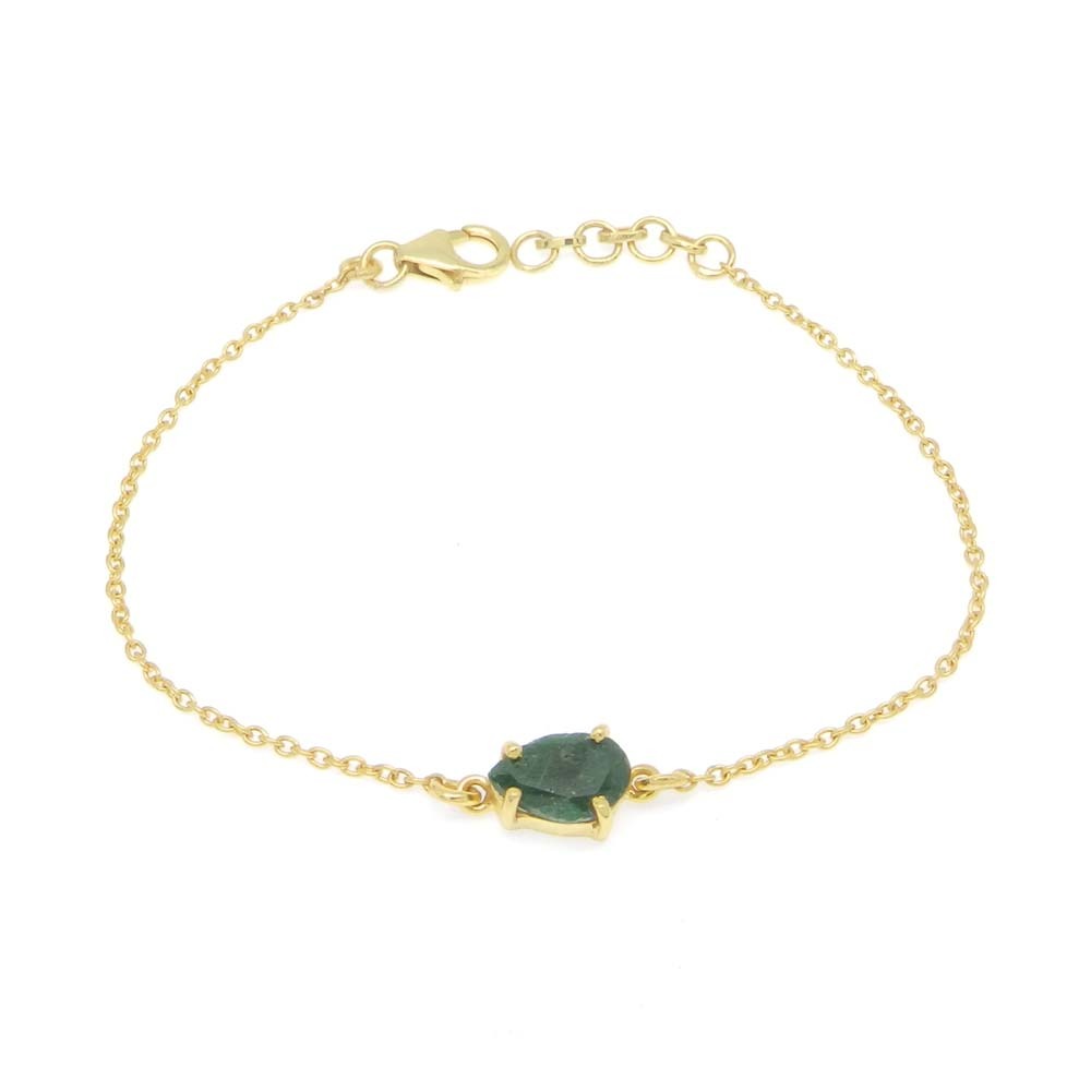 925 Sterling Silver Emerald Corundum Pear Gemstone Chain Bracelet