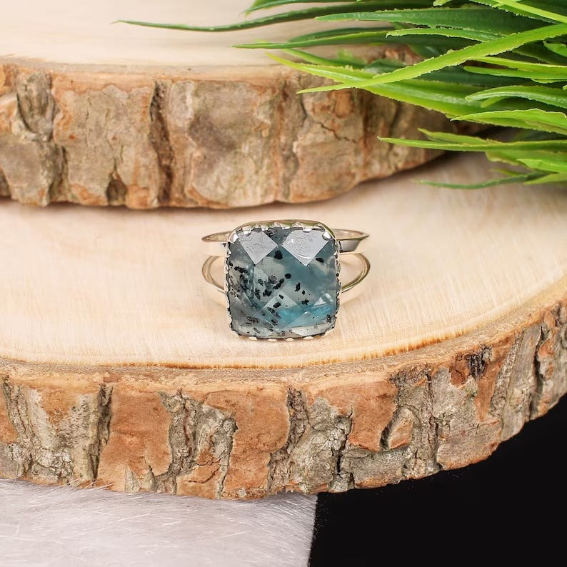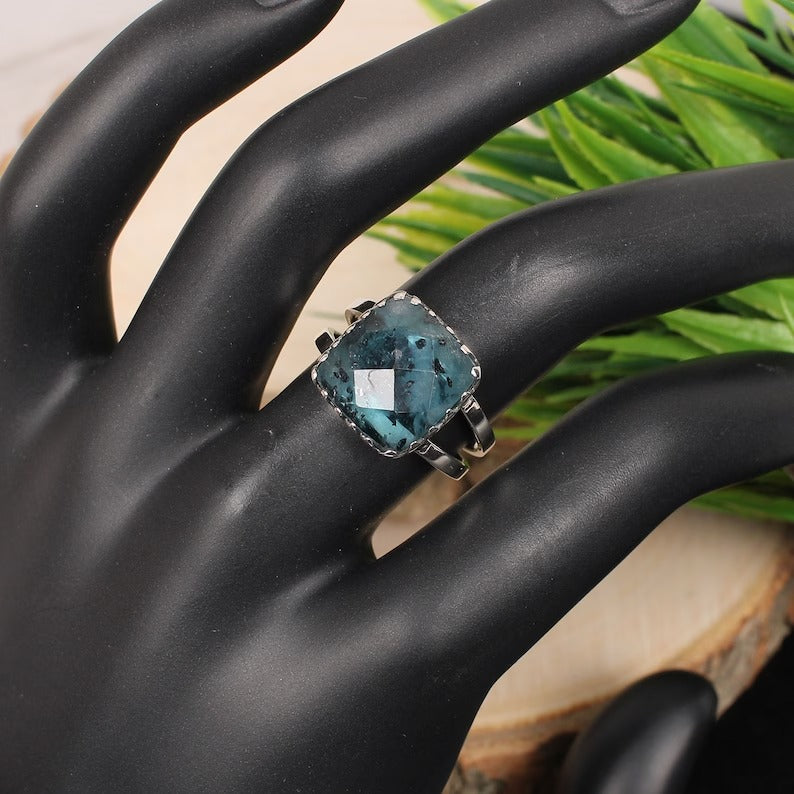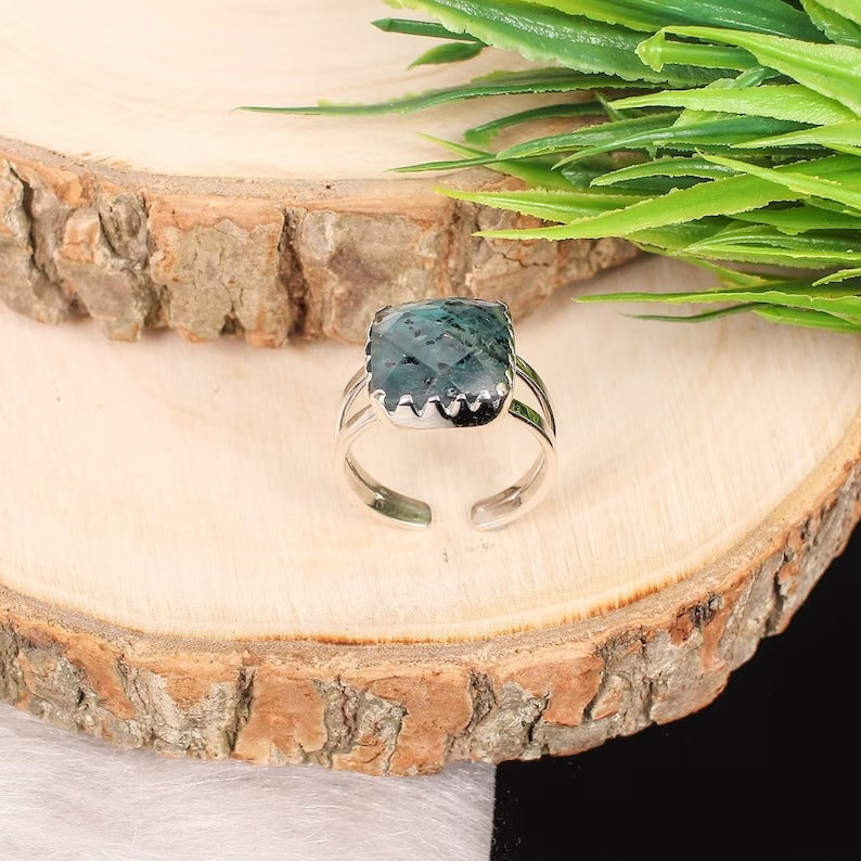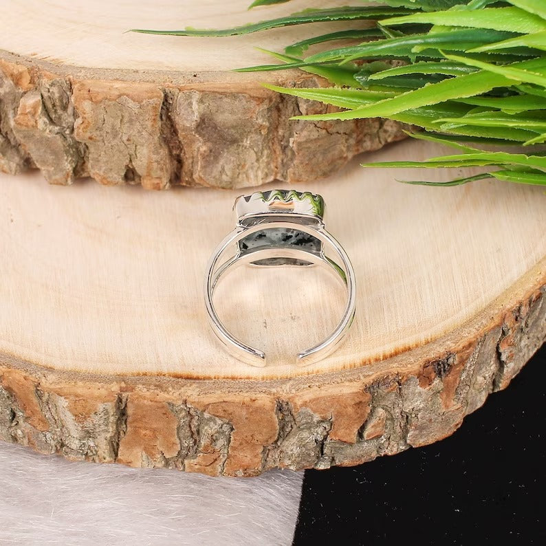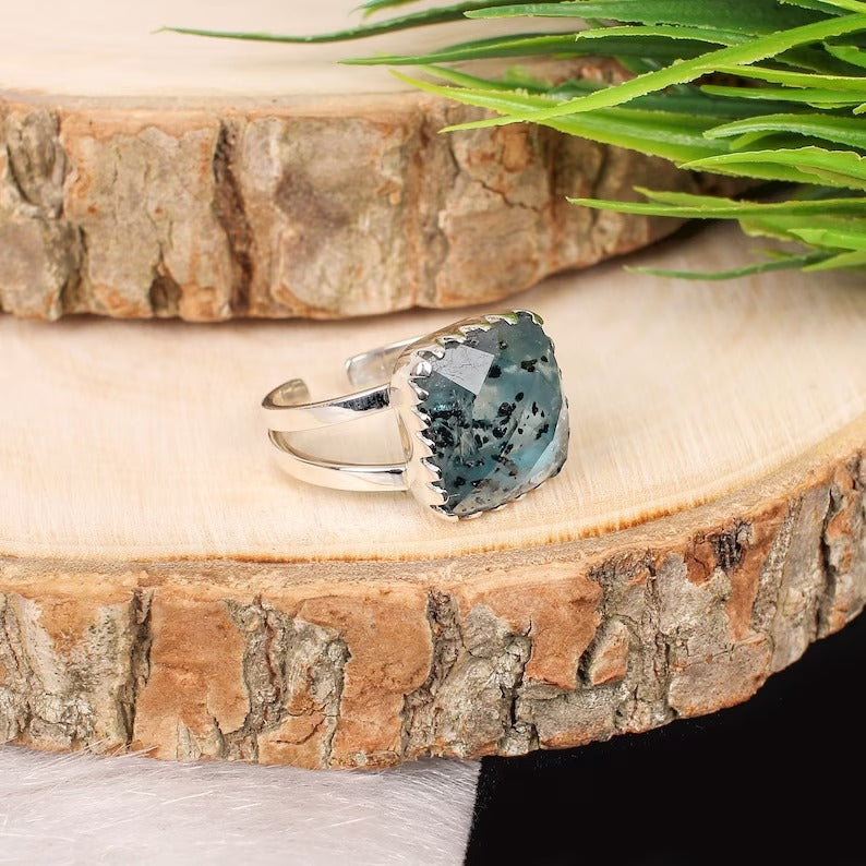 925 Sterling Silver Moss Kyanite Gemstone Ring