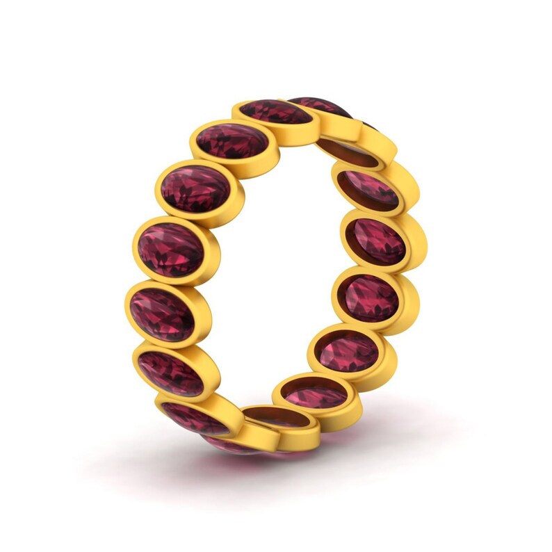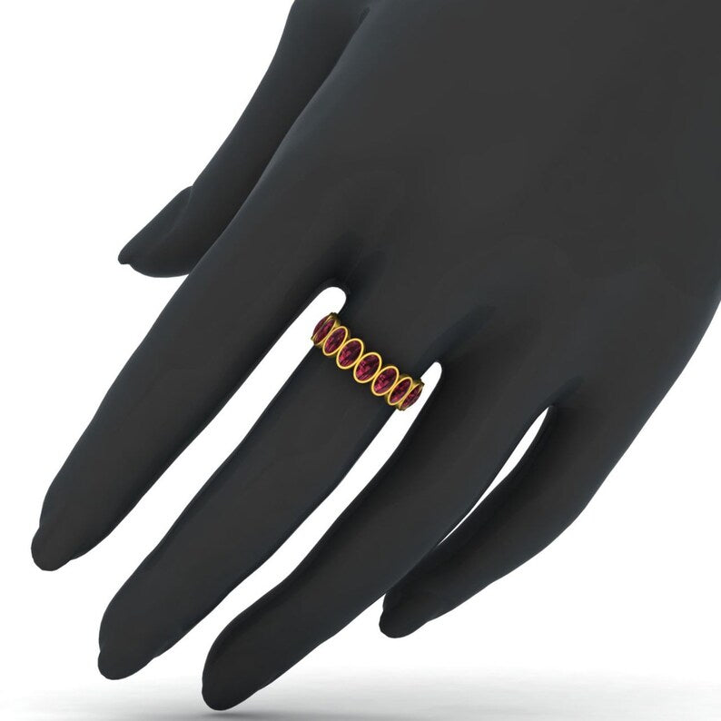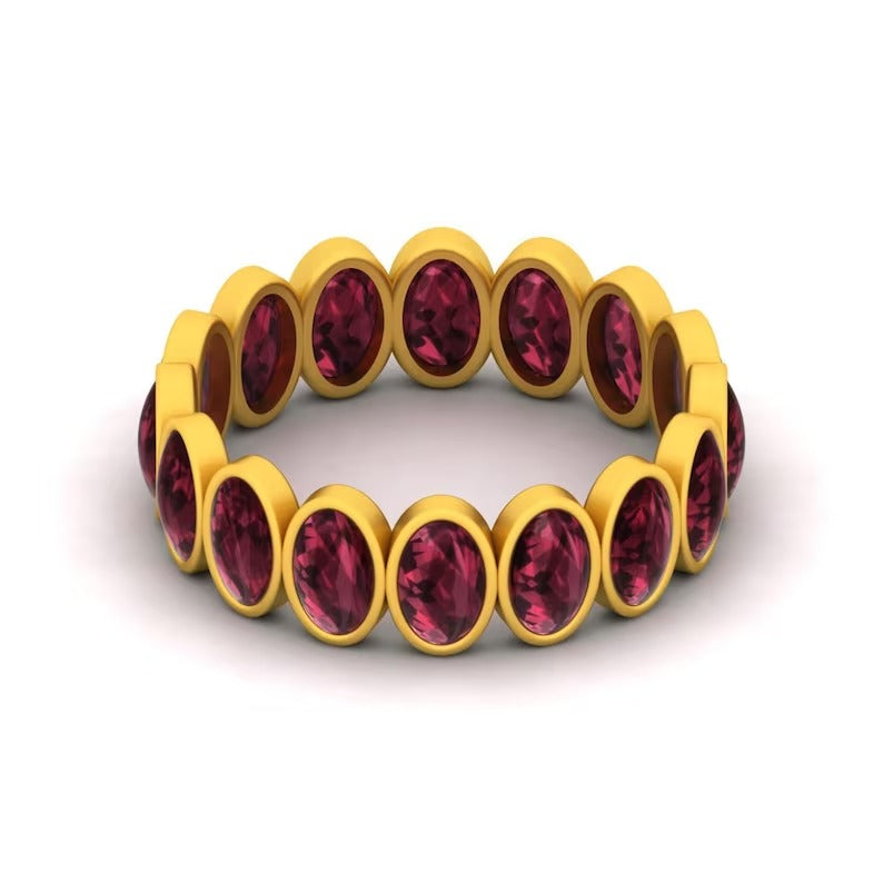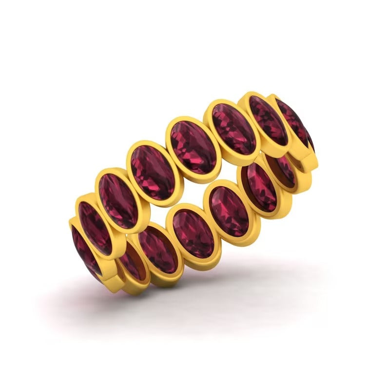 925 Sterling Silver Oval Red Garnet Eternity Band Ring