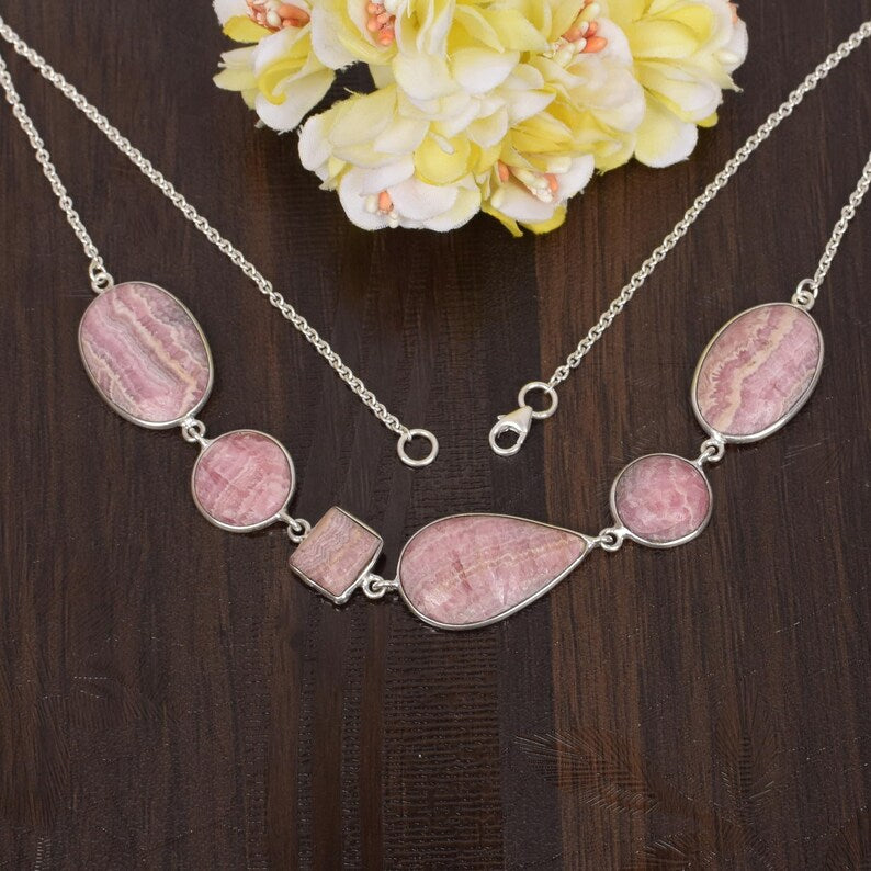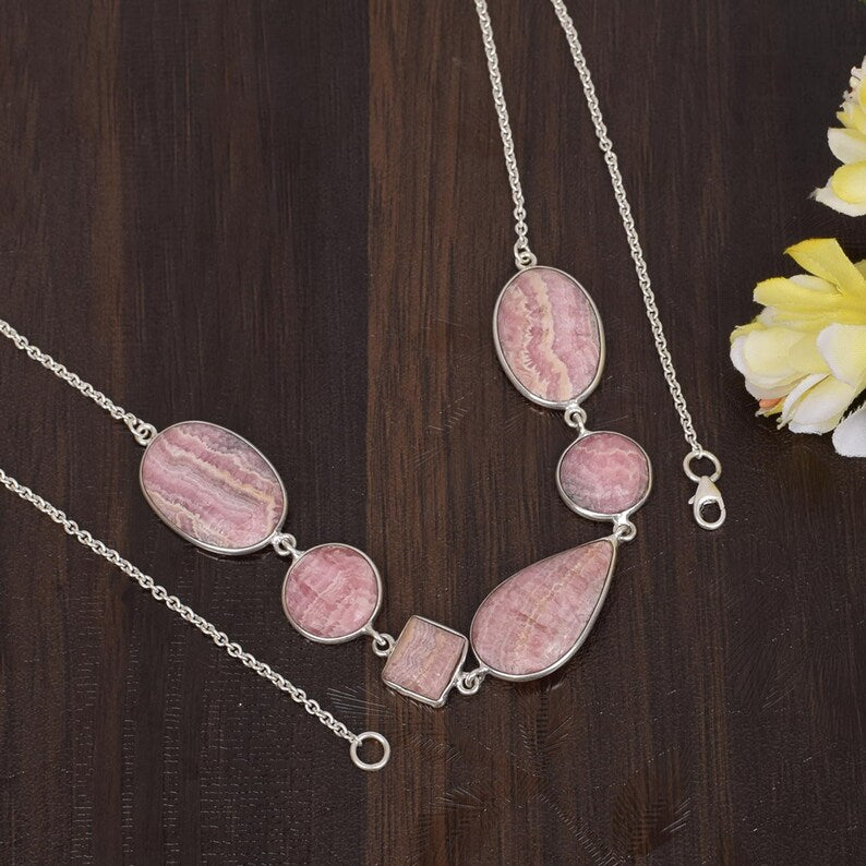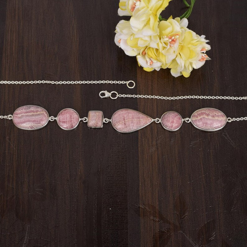925 Sterling Silver Rhodochrosite Cabochon Necklace
