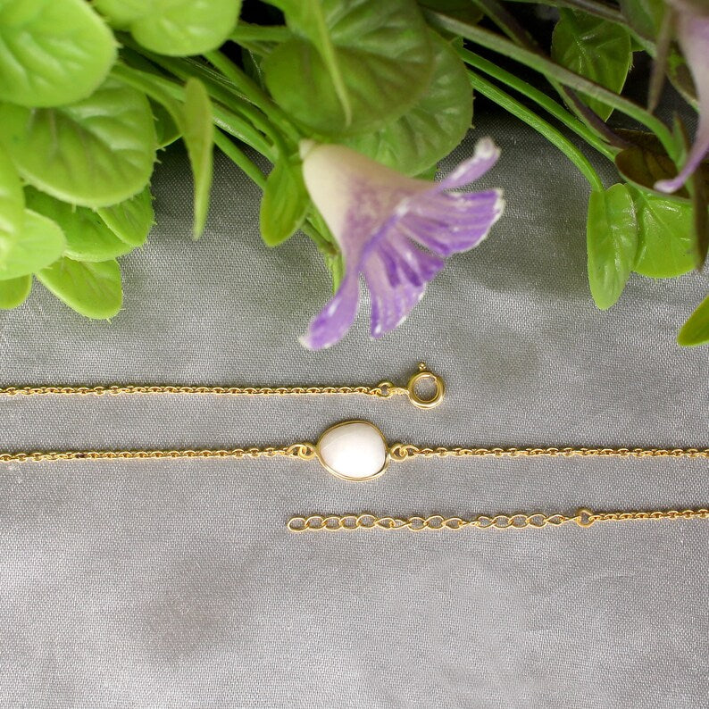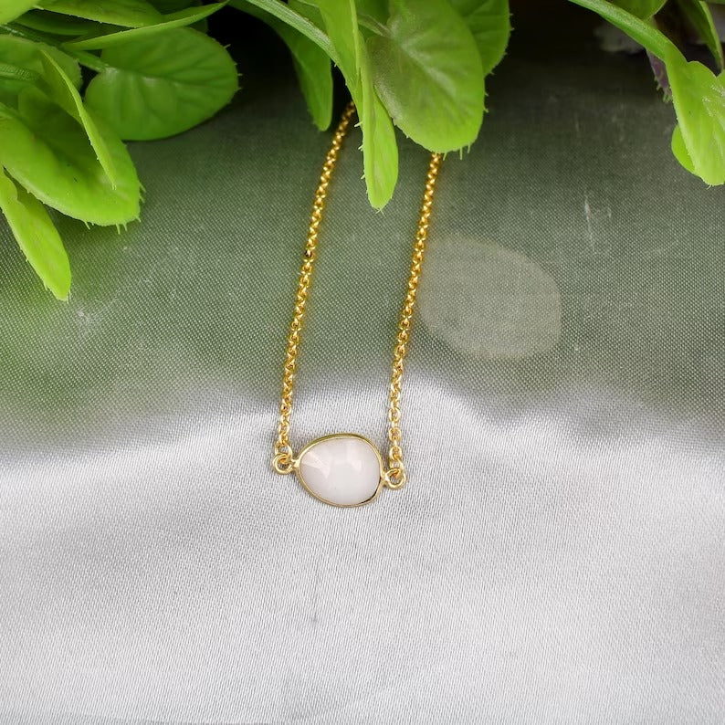 925 Sterling Silver White Agate Gemstone Necklace