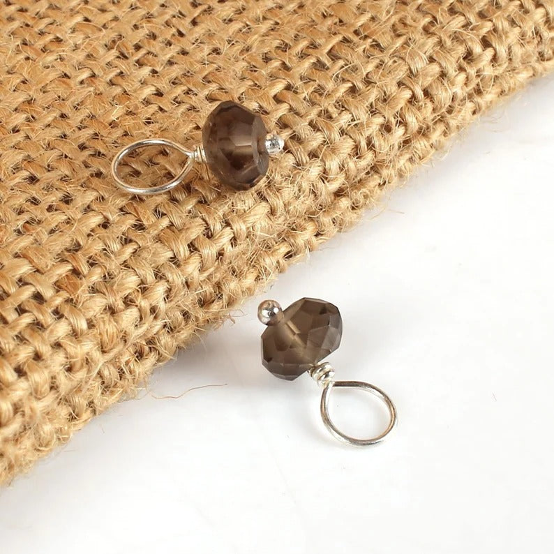 925 Sterling Silver Wire, Roundel Faceted Gemstone Charms, 6 x 3 mm & 6 x 4 mm Connectors, Handmade Wire Wrapped, Jewelry Making Supplies,