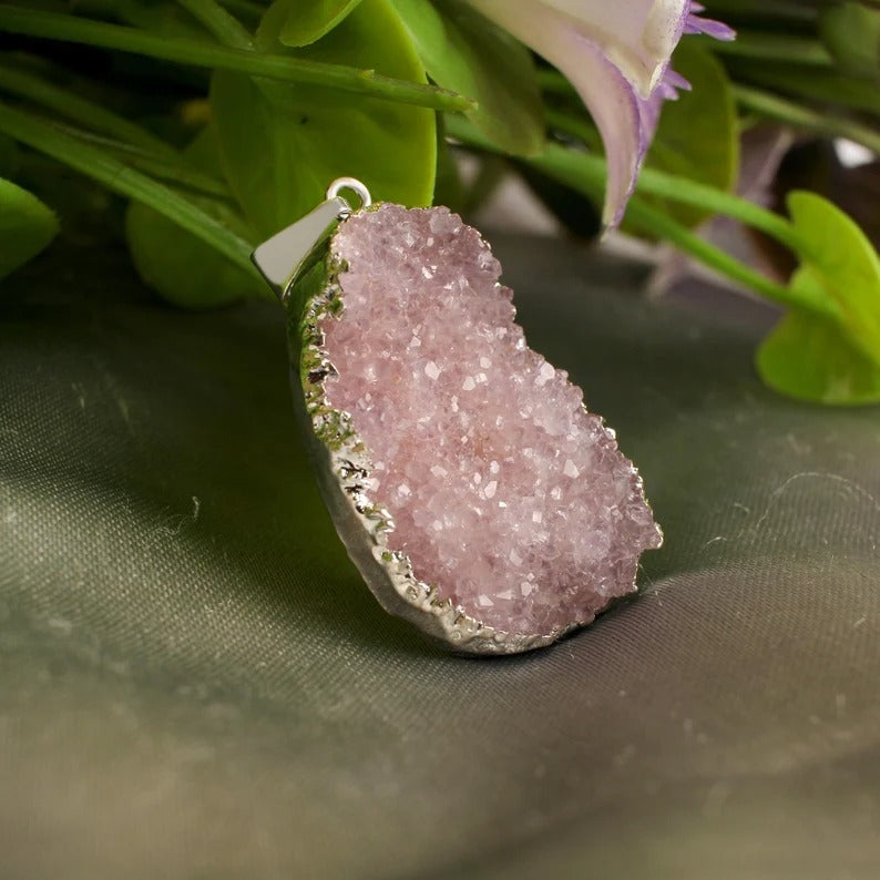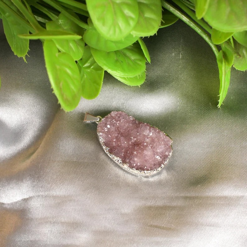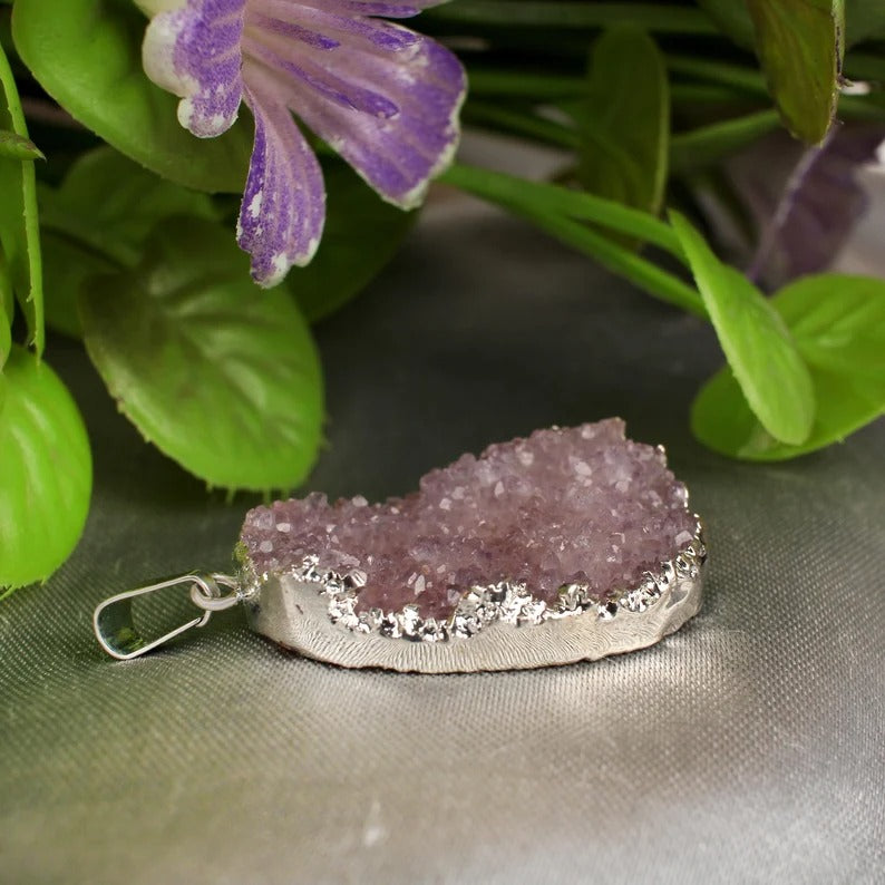 Amethyst Druzy Electro Silver Plated Pendant