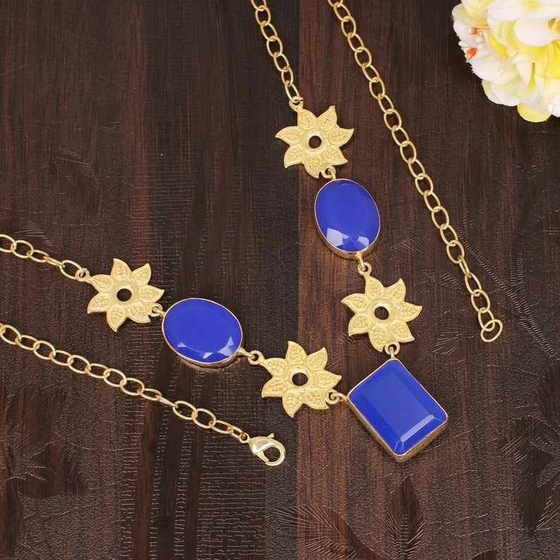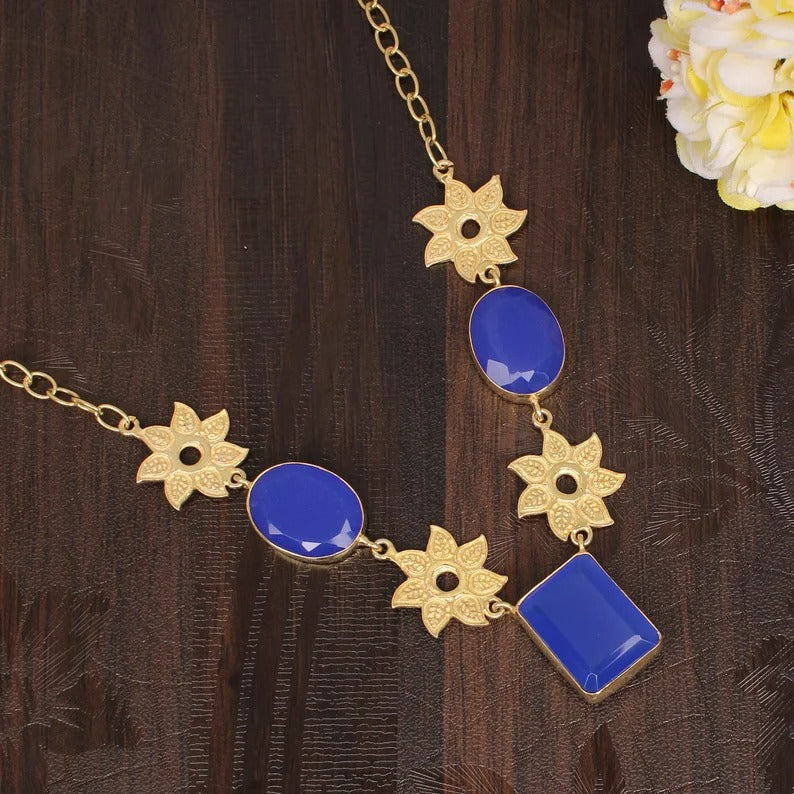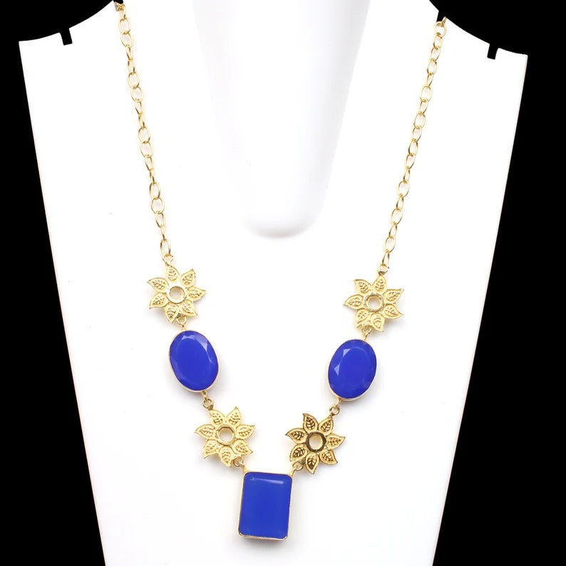 Antique Natural Chalcedony Flower Design Necklace