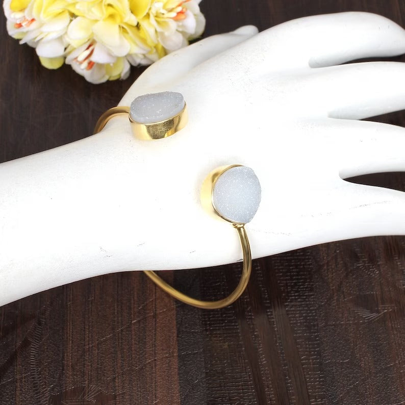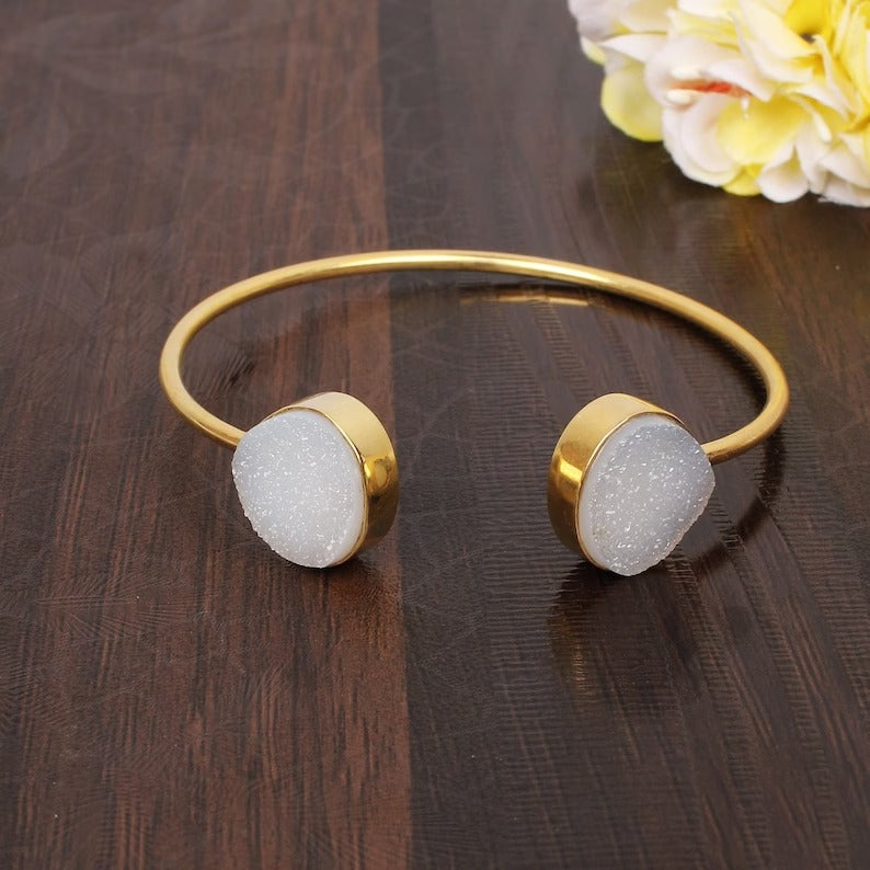 Antique Natural Druzy Dainty Cuff Bracelet...