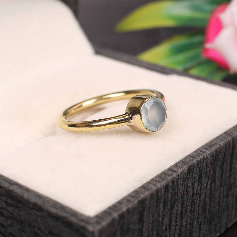 Aqua Chalcedony Gemstone 92.5 Sterling Silver Ring