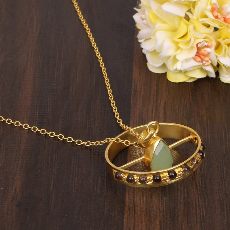 Aqua Chalcedony Spinner Necklace