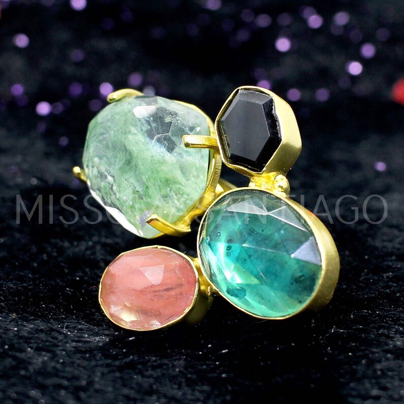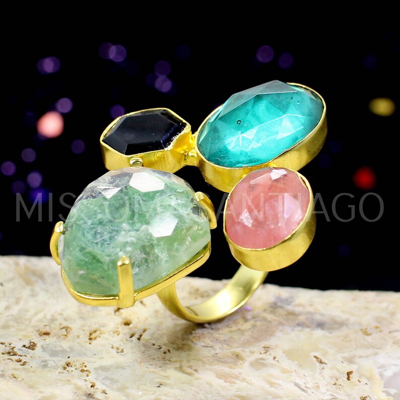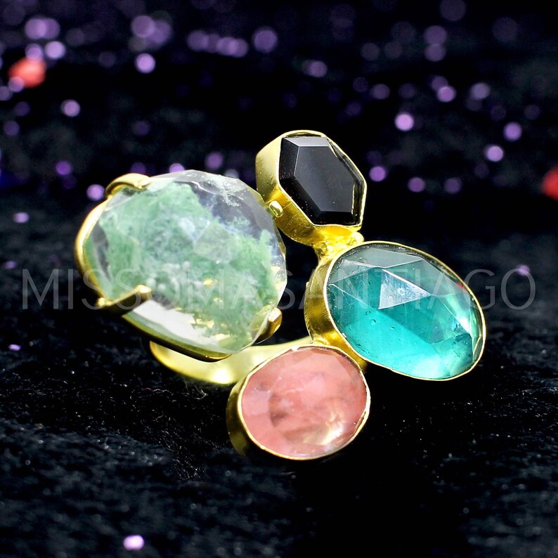 Aqua Crackle Glass ,Cherry Crackle & Apatite Hydro Ring