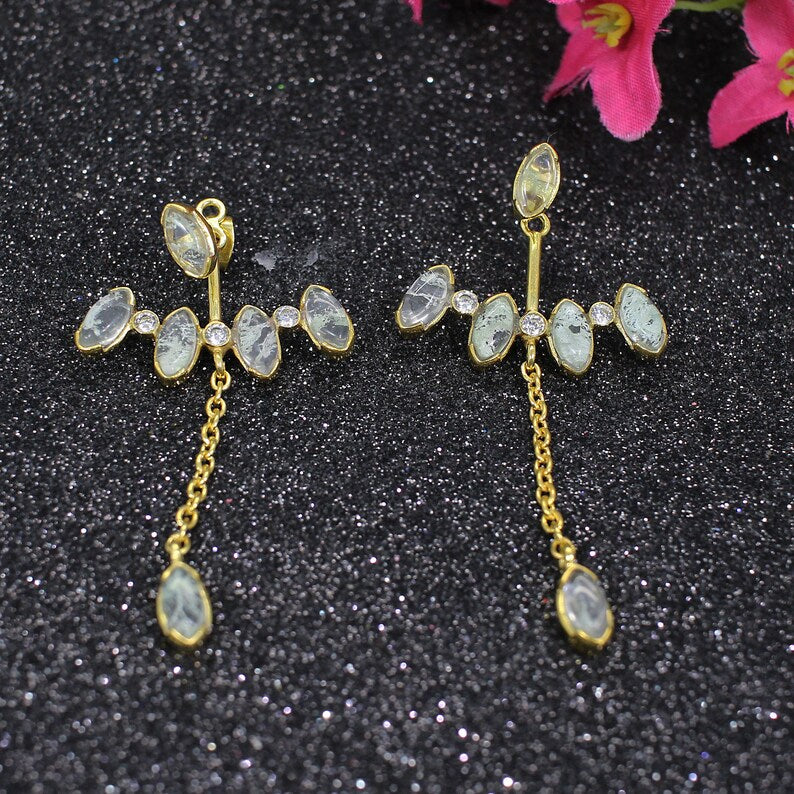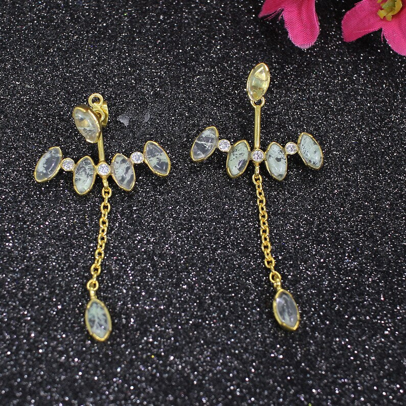 Aqua Crackle Glass & CZ Gemstone Earrings