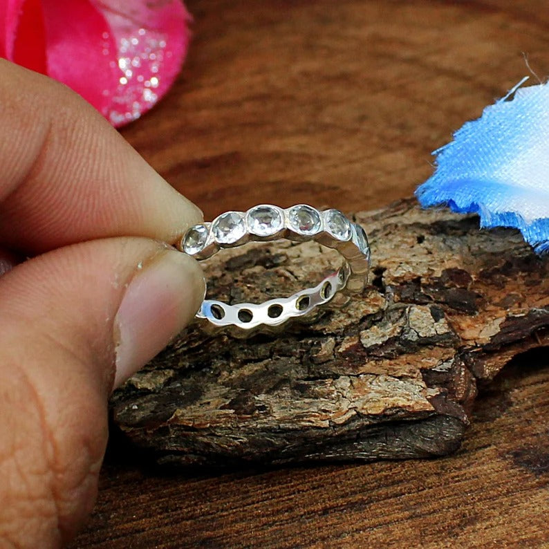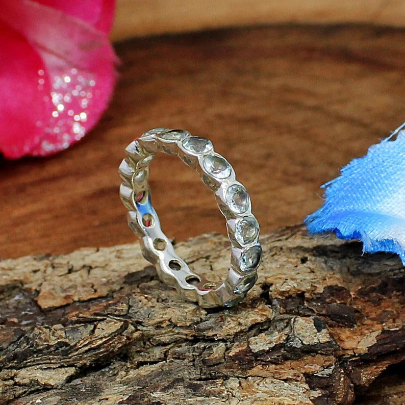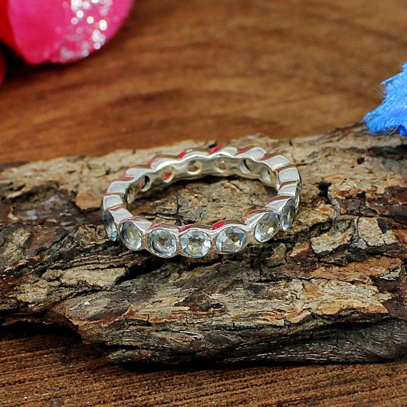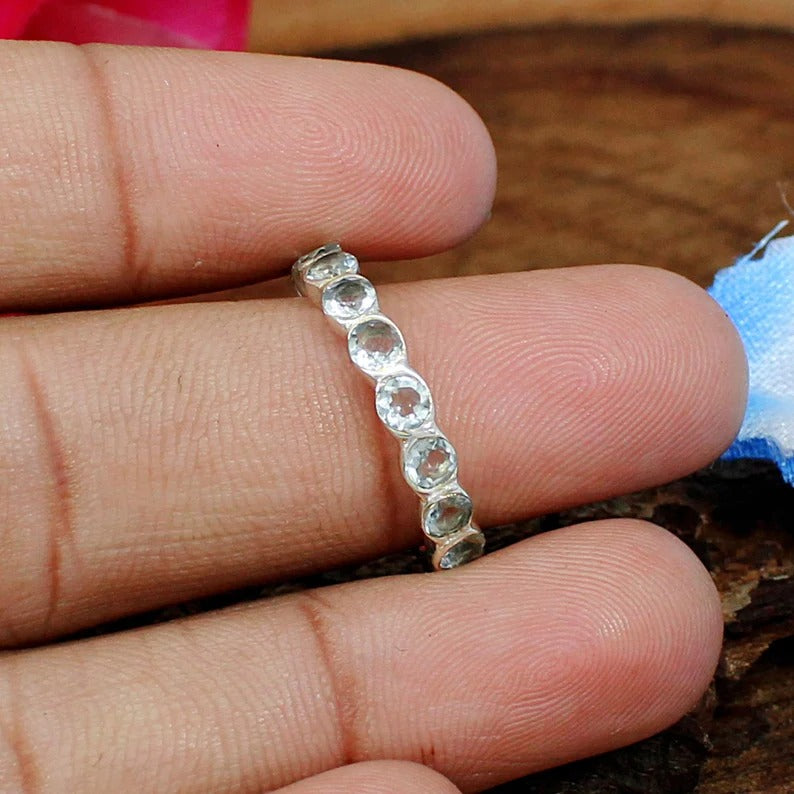 Aquamarine Gemstone 92.5 Silver Eternity Band