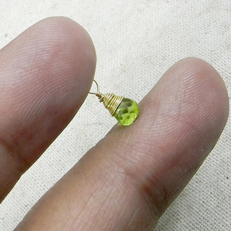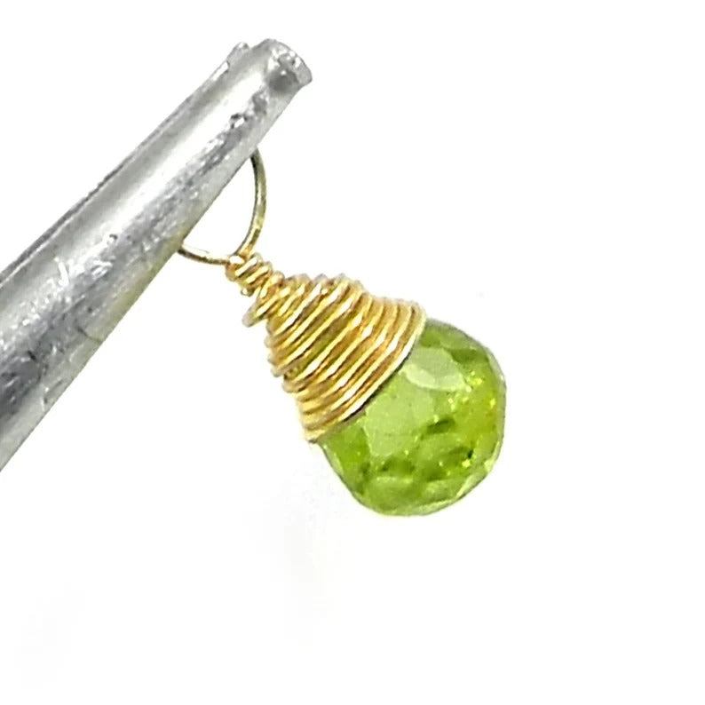 August birthstone natural peridot 925 sterling silver gold plated 13 x 5 mm wire crafted drop wire wrapped connector for making jewelry