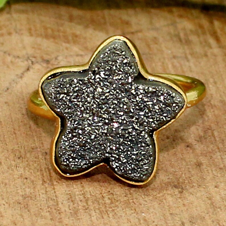 Black Marcasite Druzy 92.5 Sterling Silver Ring