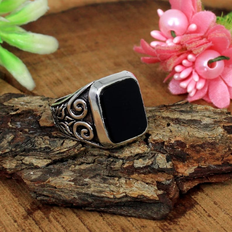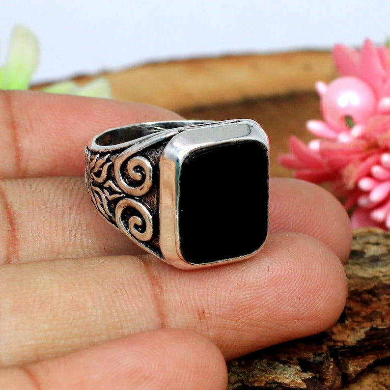 Black Onyx Gemstone 92.5 Sterling Silver Ring