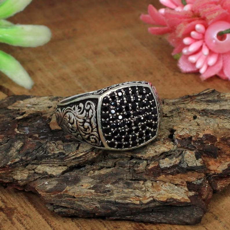 Black Onyx Gemstone 92.5 Sterling Silver Ring