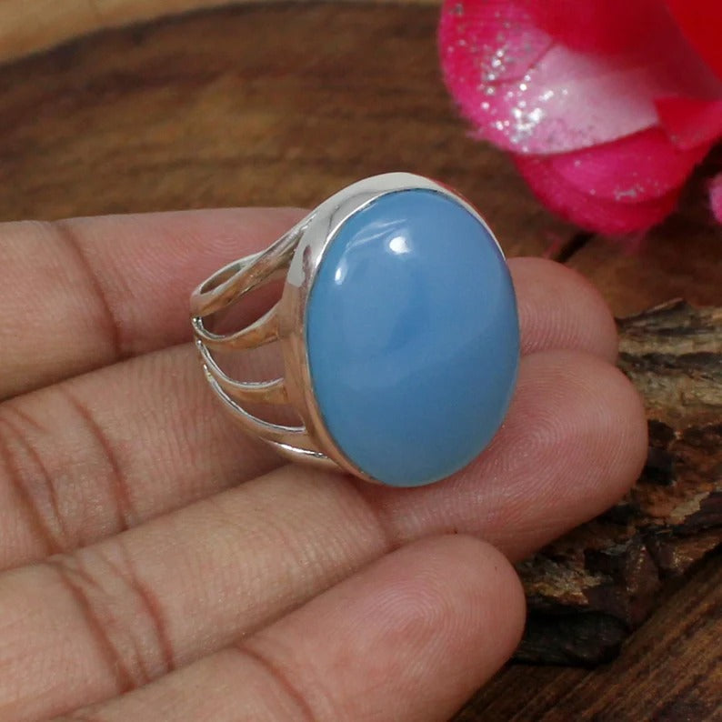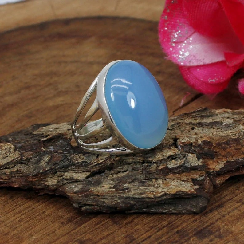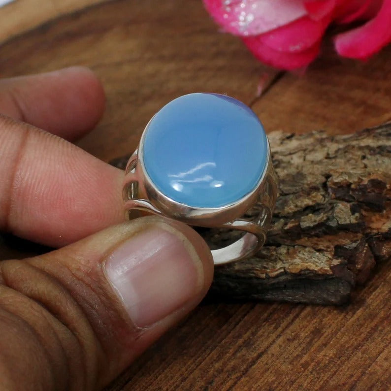Blue Chalcedony 92.5 Sterling Silver Ring