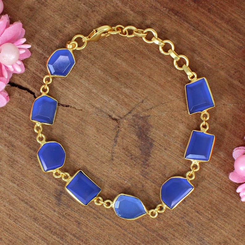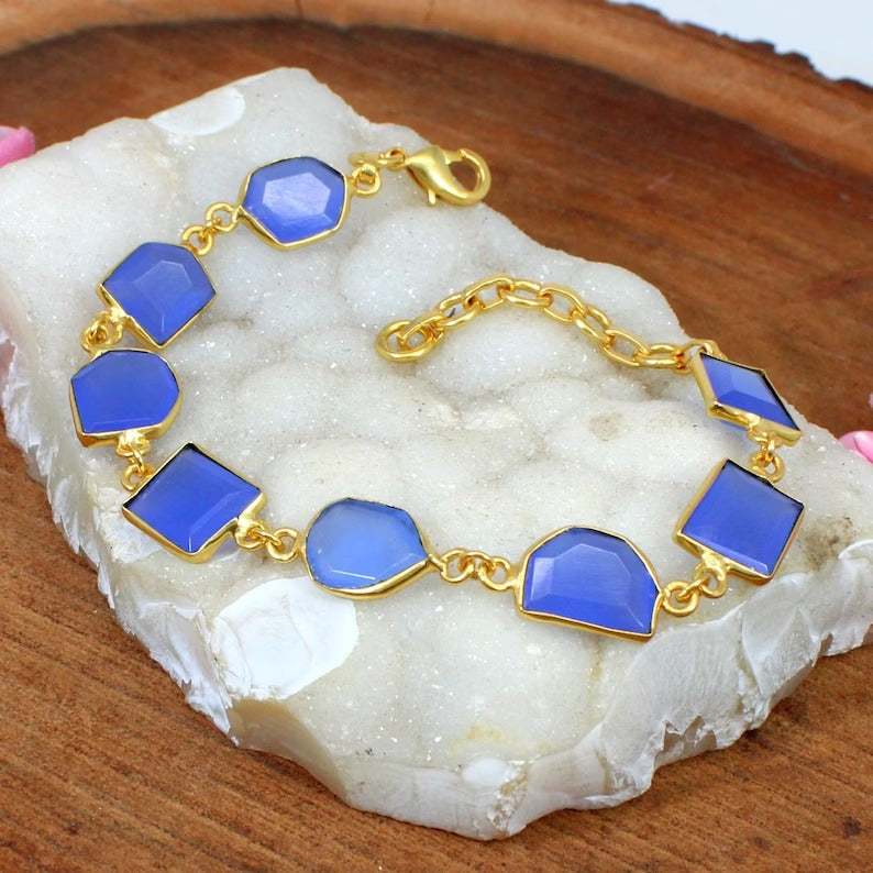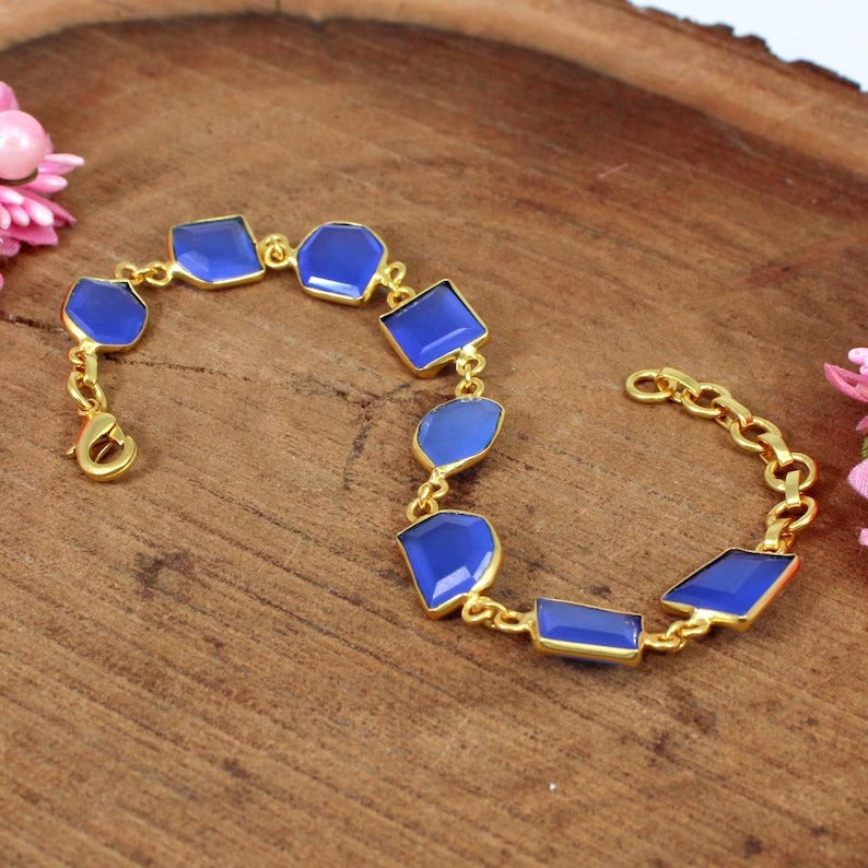 Blue Chalcedony Gemstone Gold Plated Bracelet