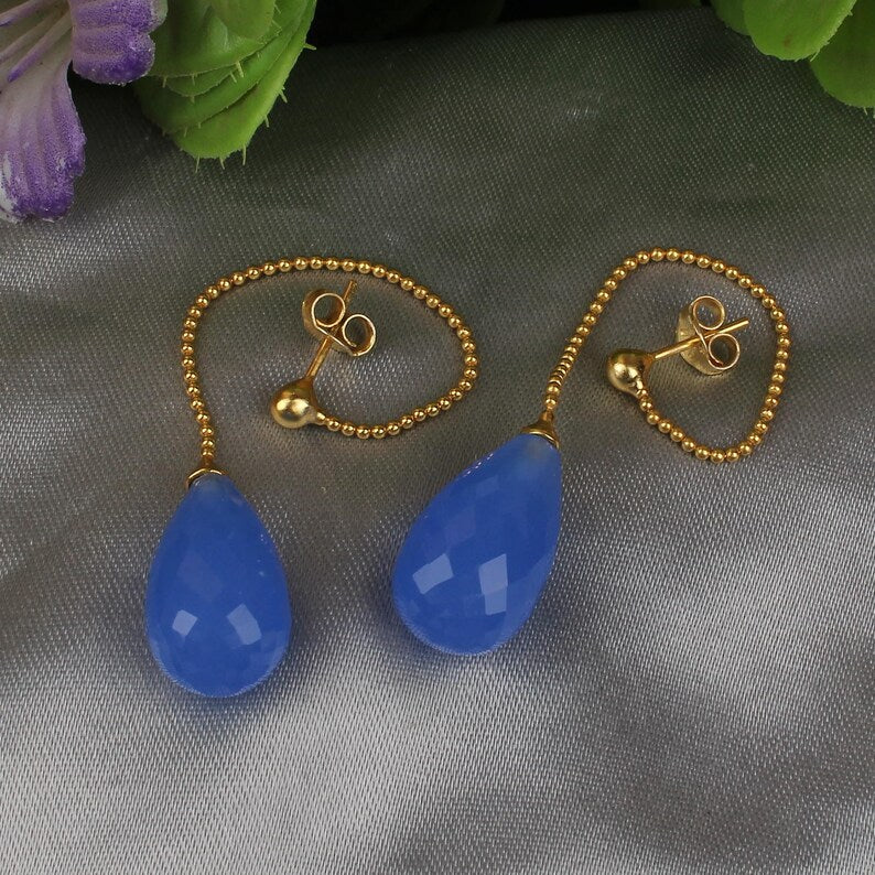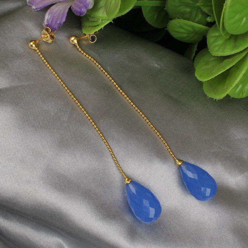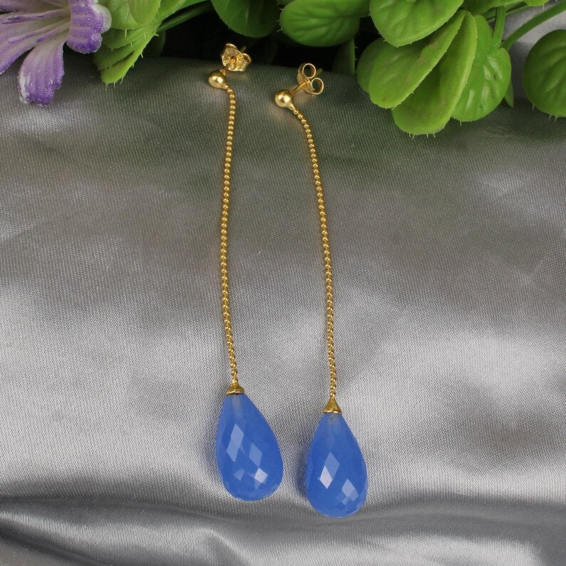 Blue Chalcedony Gemstone Tear Drop Earrings