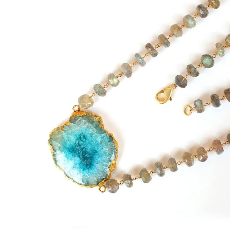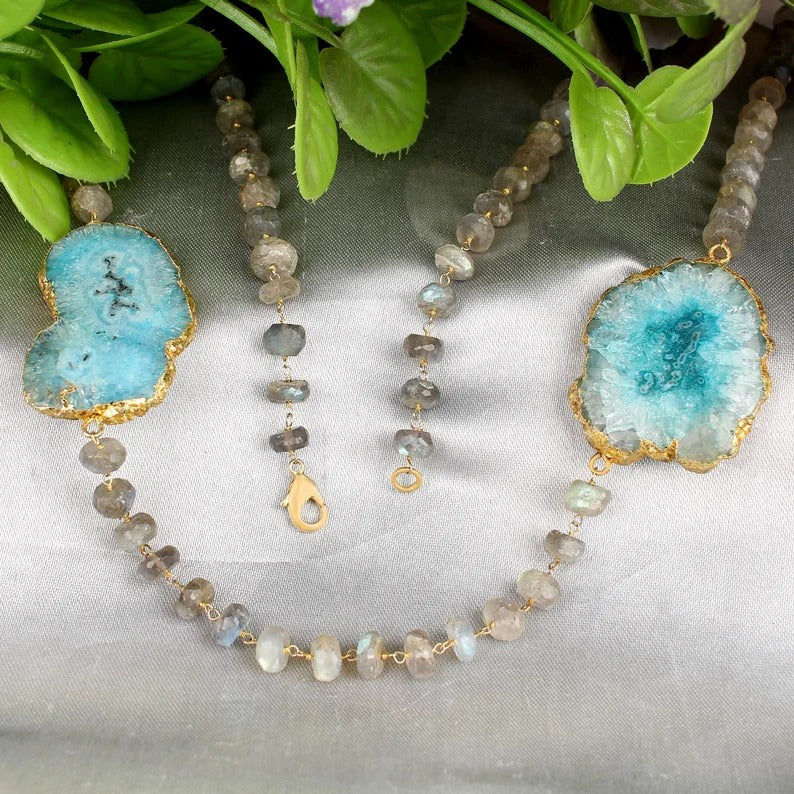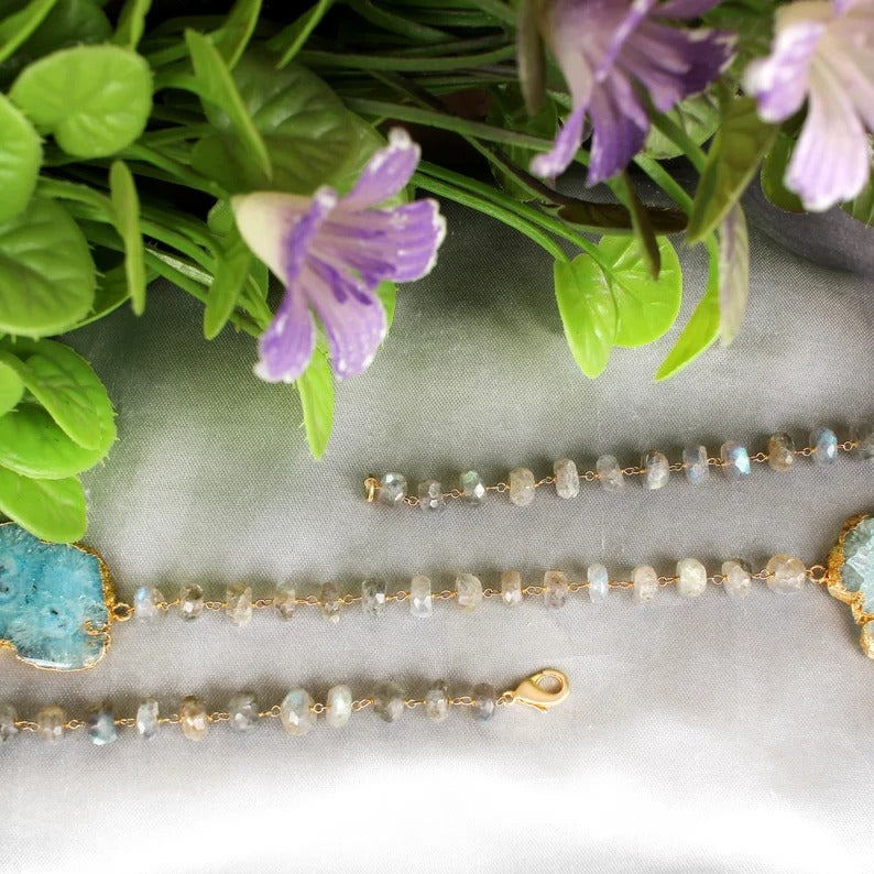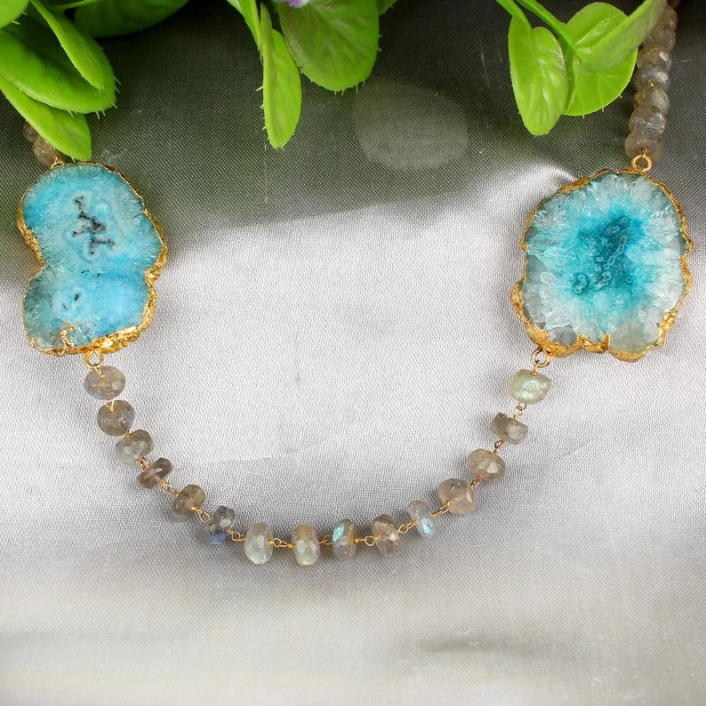 Stone: Blue Solar Quartz Druzy, Labradorite