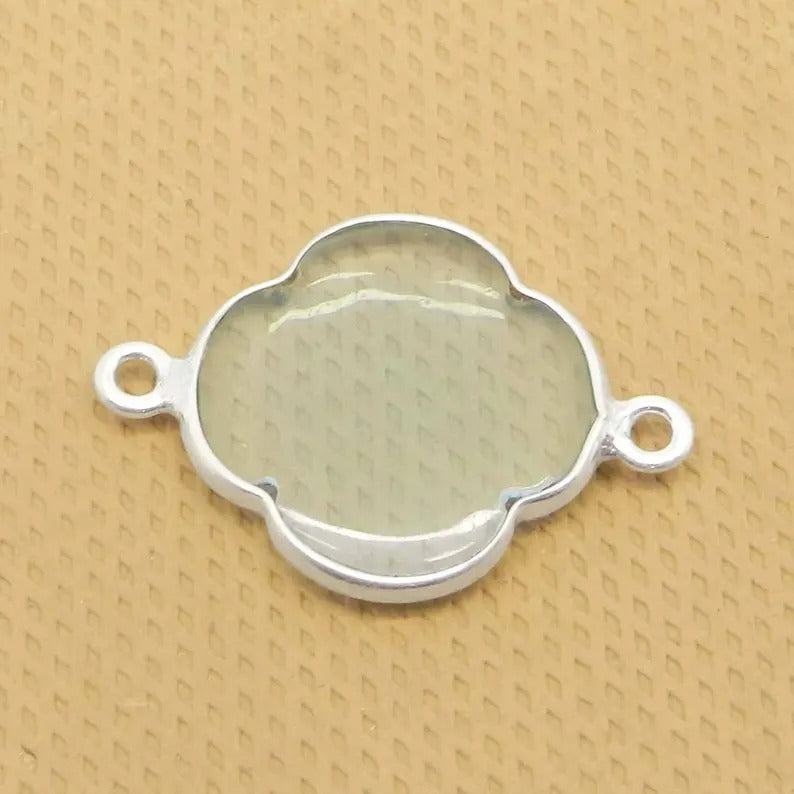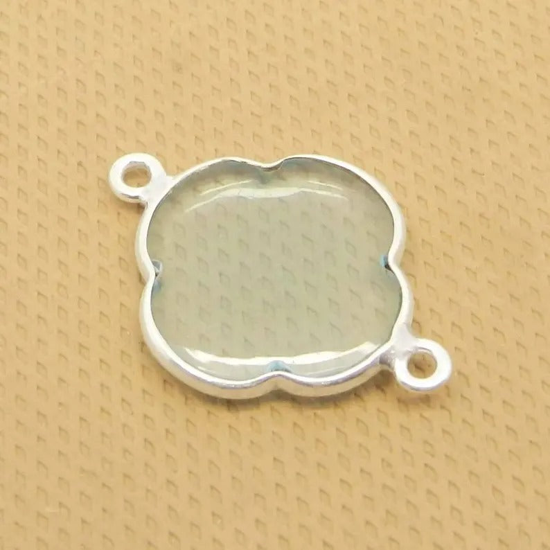 Blue topaz hydro clover flat cab 925 sterling silver 25 x 15 mm double loop station connector for making jewelry