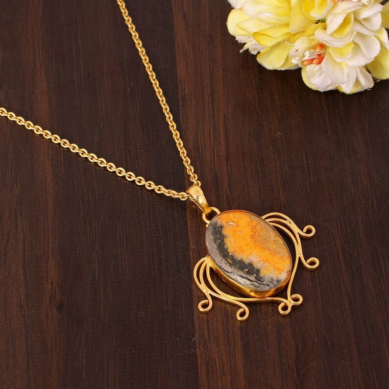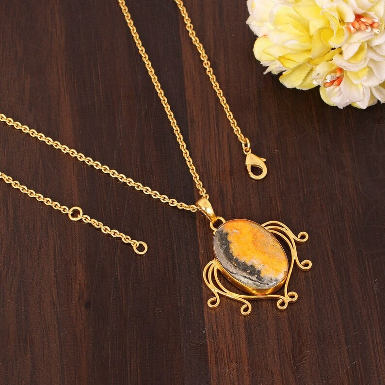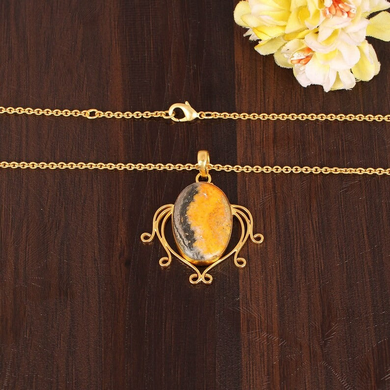 Bumble Bee Jasper Gemstone Brass Necklace