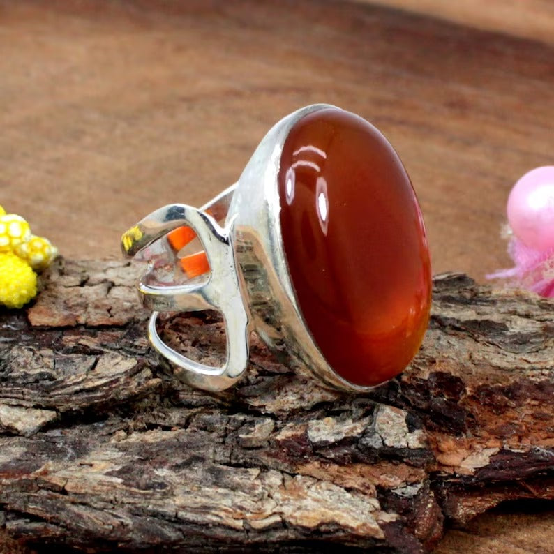 Carnelian Gemstone 92.5 Sterling Silver Ring