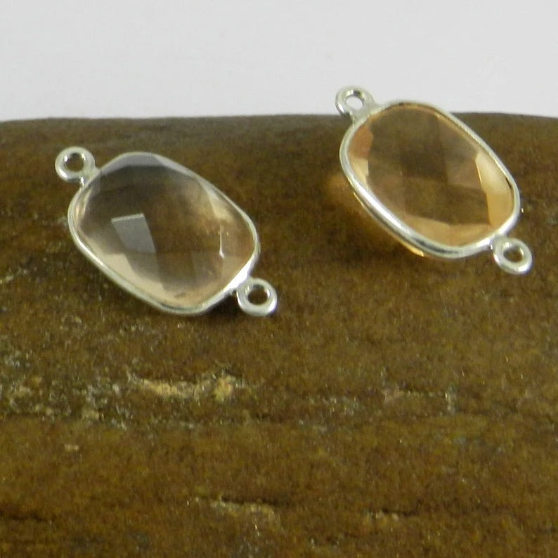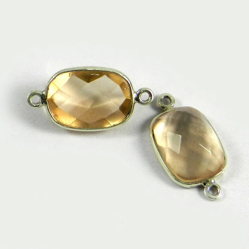 Champagne hydro 22 x 11 mm rectangle checkerboard cut 925 sterling silver double loop bezel set station connector for making jewelry