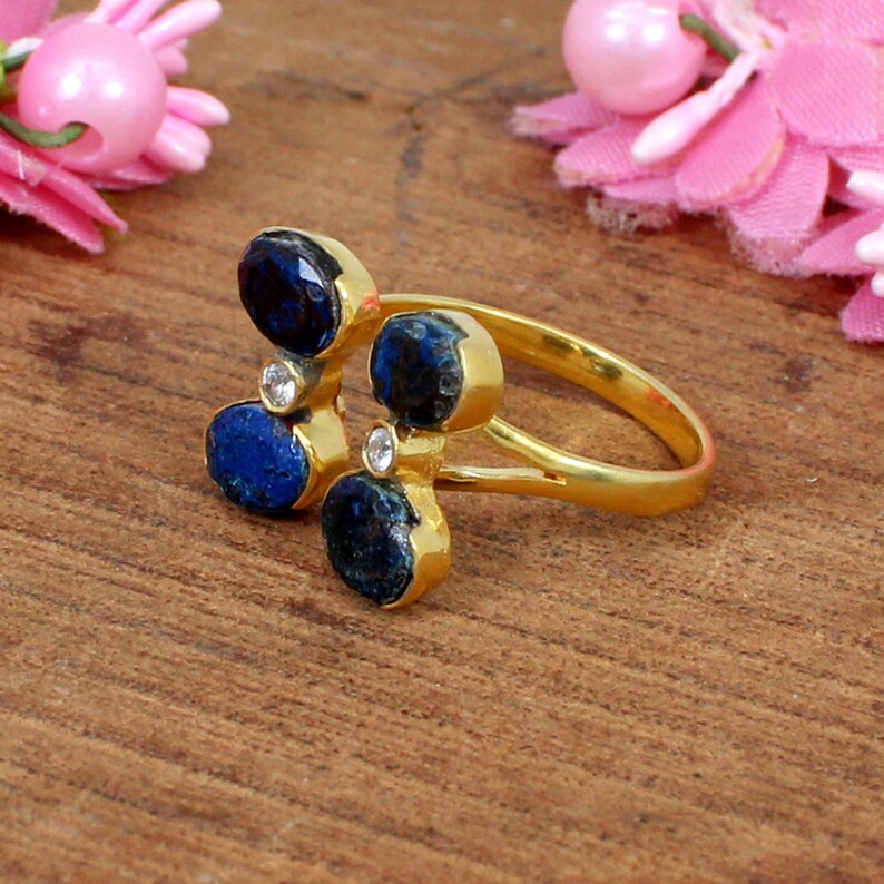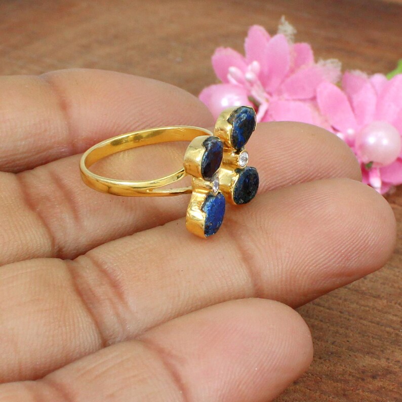 Chrysocolla & Cz Brass Gold Plated Ring