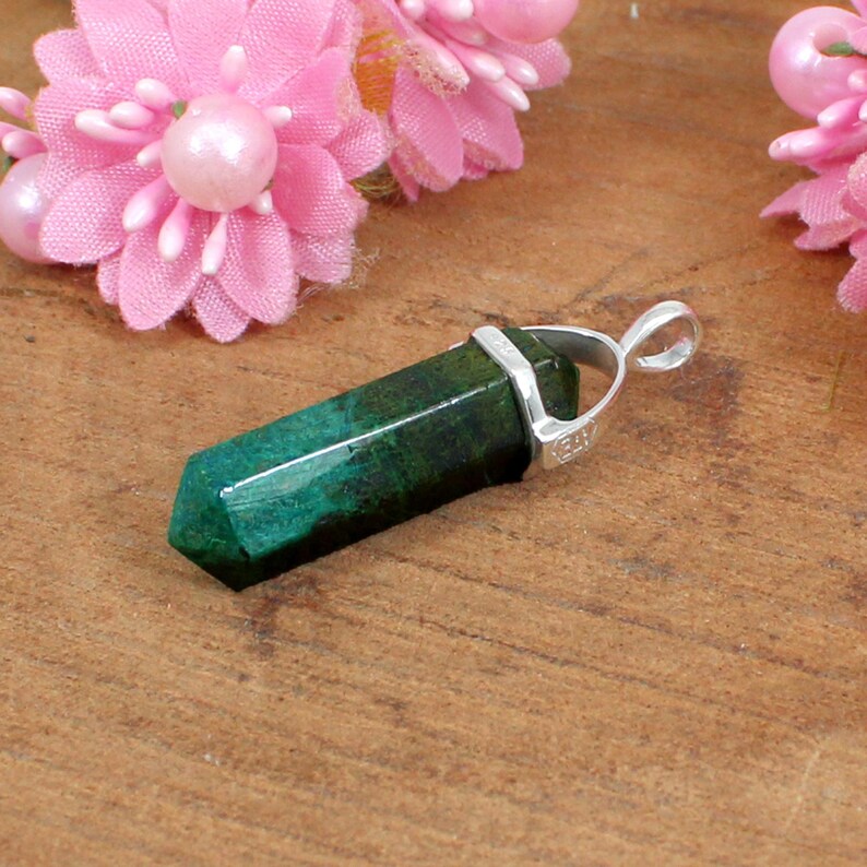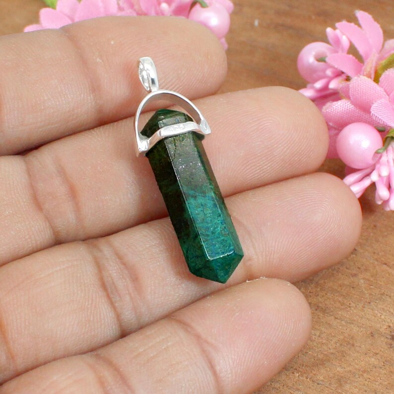 Chrysocolla Pendant Double Terminated Bail Pencil Point Pendant Necklace