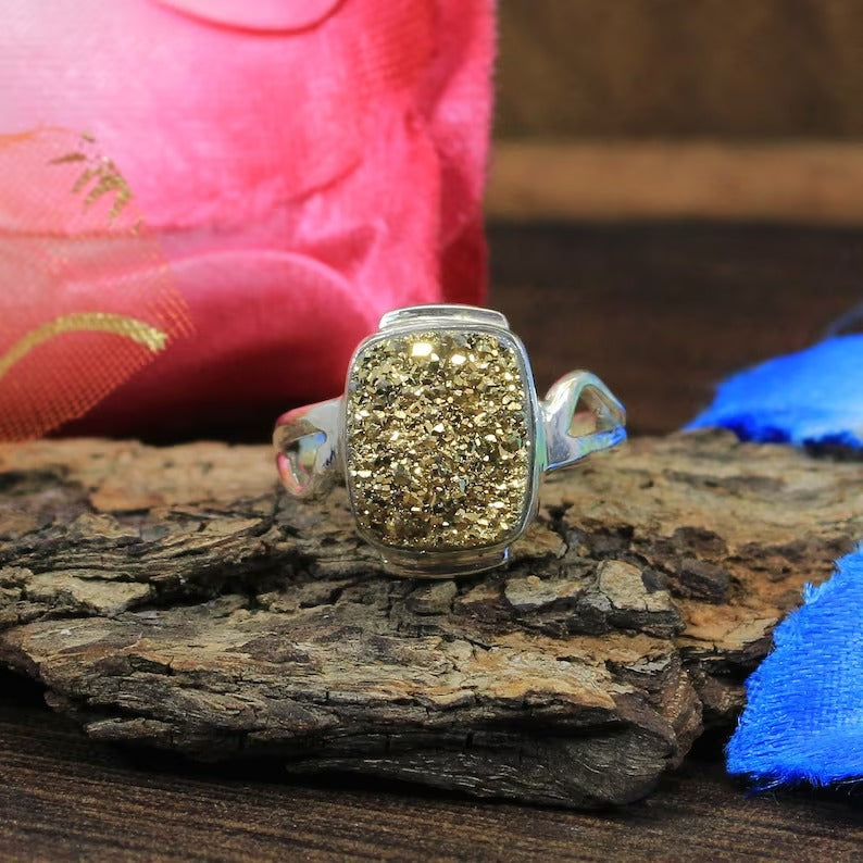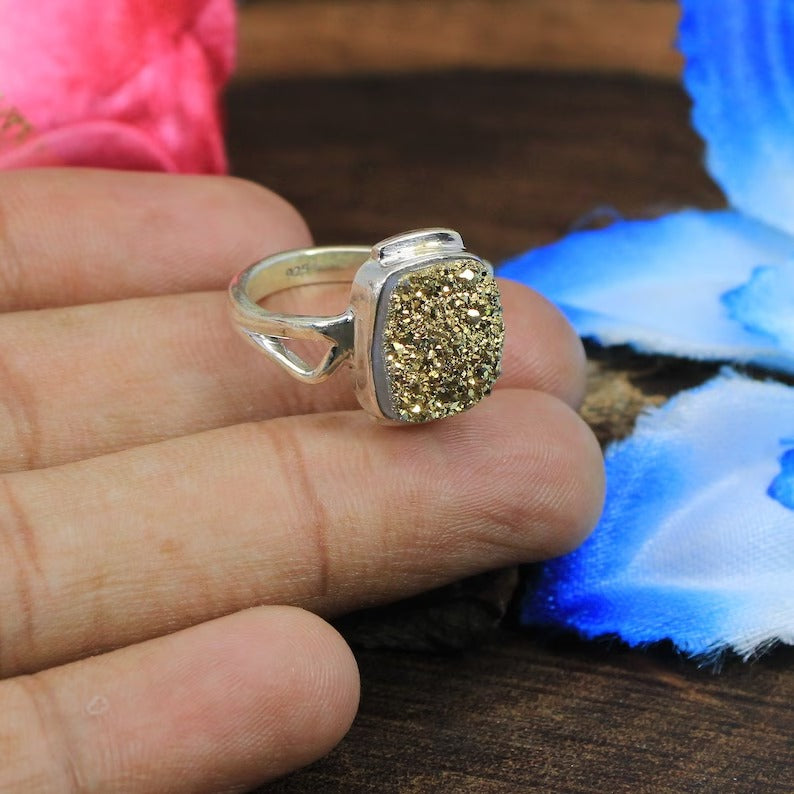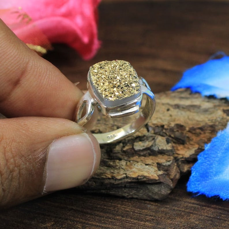 Coated Druzy 925 Sterling Designer Ring