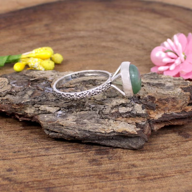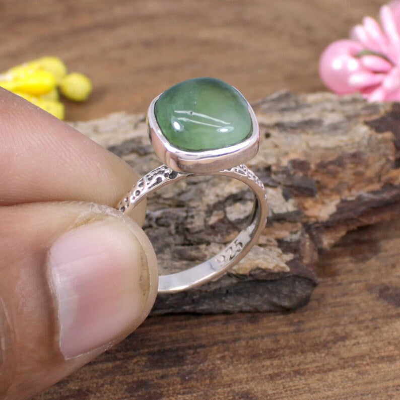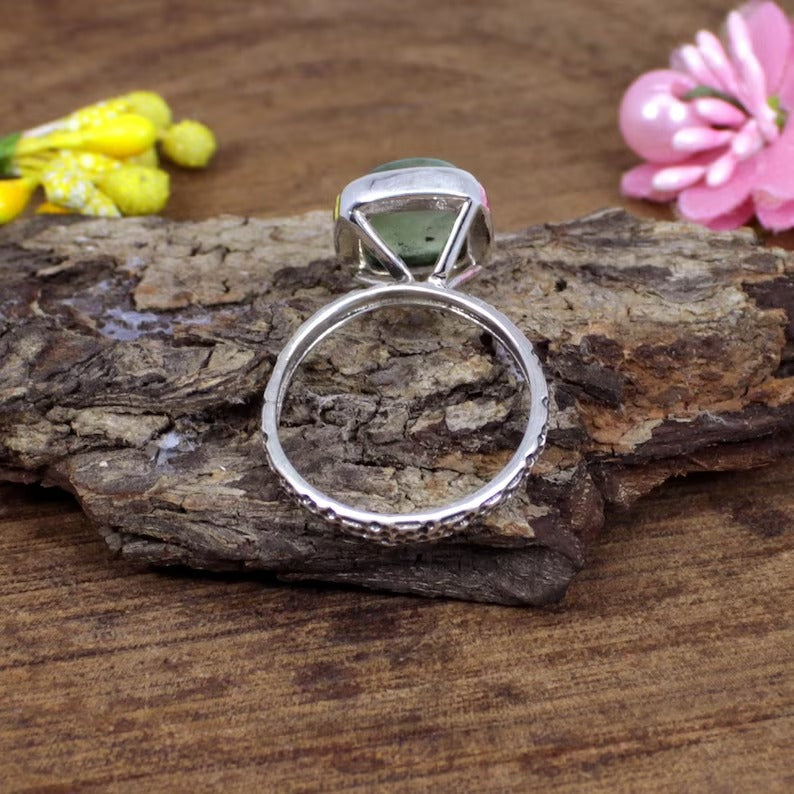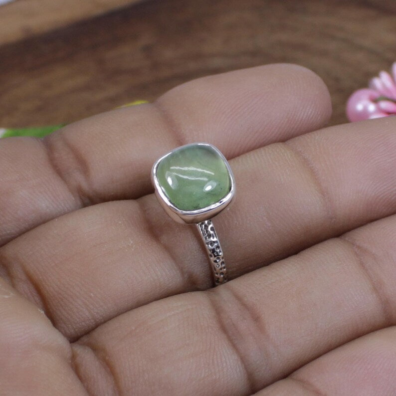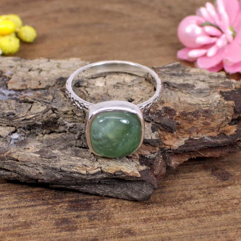 Cushion Prehnite Gemstone Sterling Silver Ring