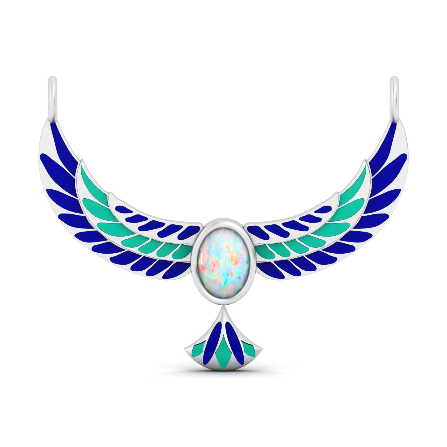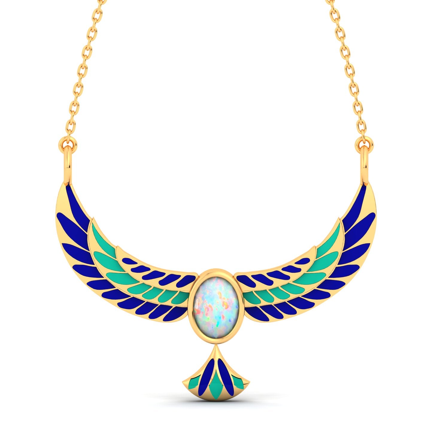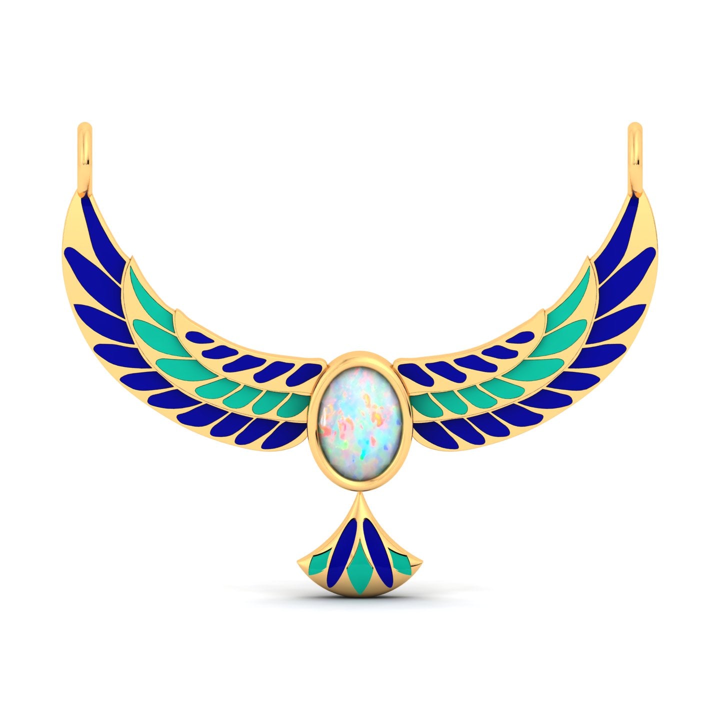 Ethiopian Opal Enamel Eagle Bird Gold Plated Pendant With Chain