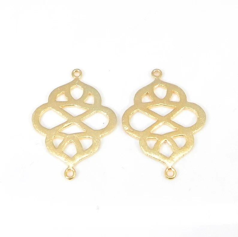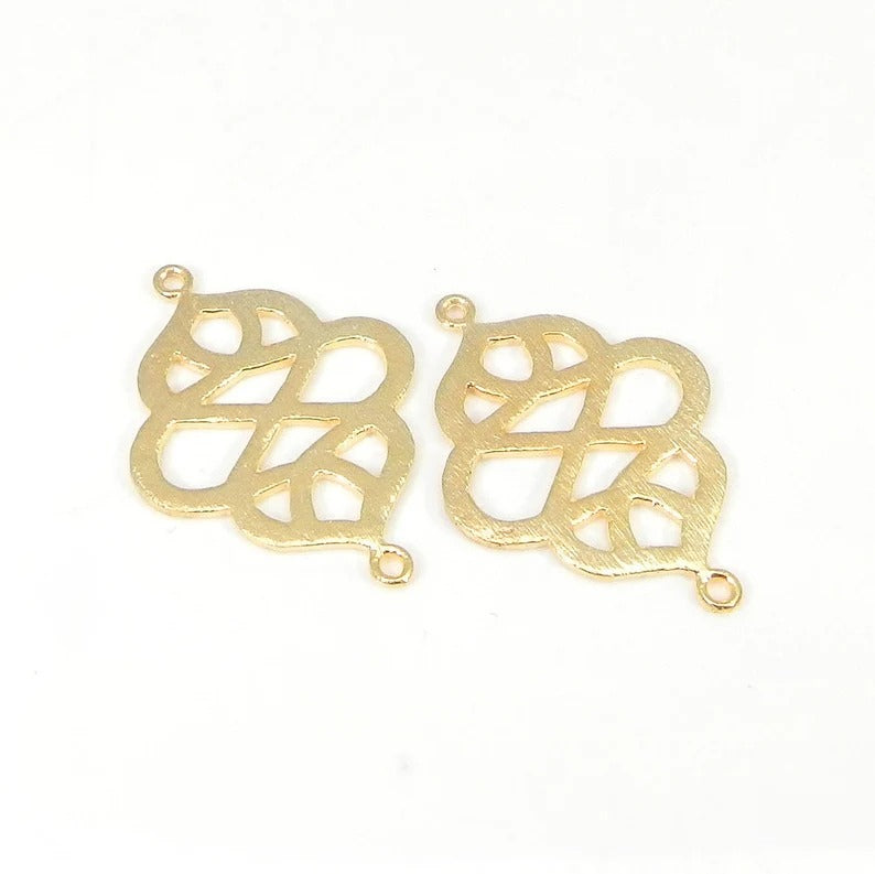 Filigree shaped raw brass gold plated laser cut 31 x 22 mm charms loop connector handmade findings accessories for making jewelry