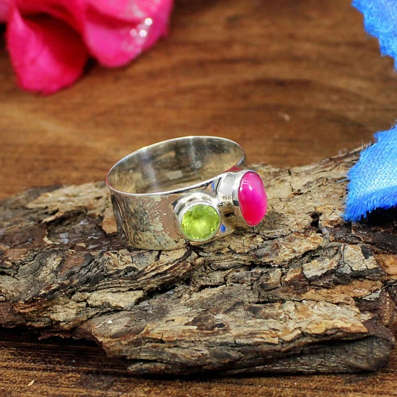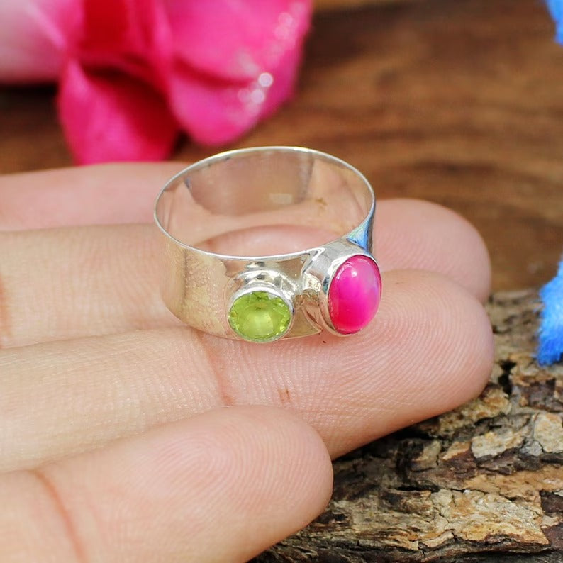✦Gemstone Size: Fuchsia ( 7 X 5 MM Approx, Oval ), Peridot ( 5 MM Approx, Round )