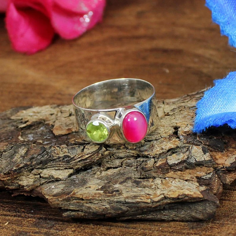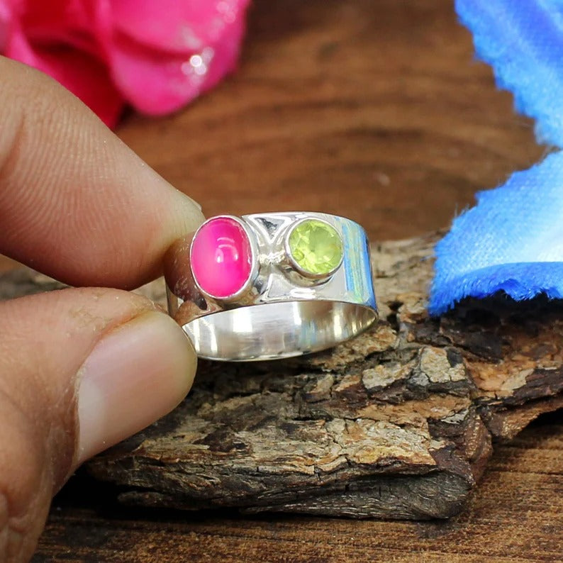 Fuchsia Chalcedony Gemstone 92.5 Sterling Silver Ring