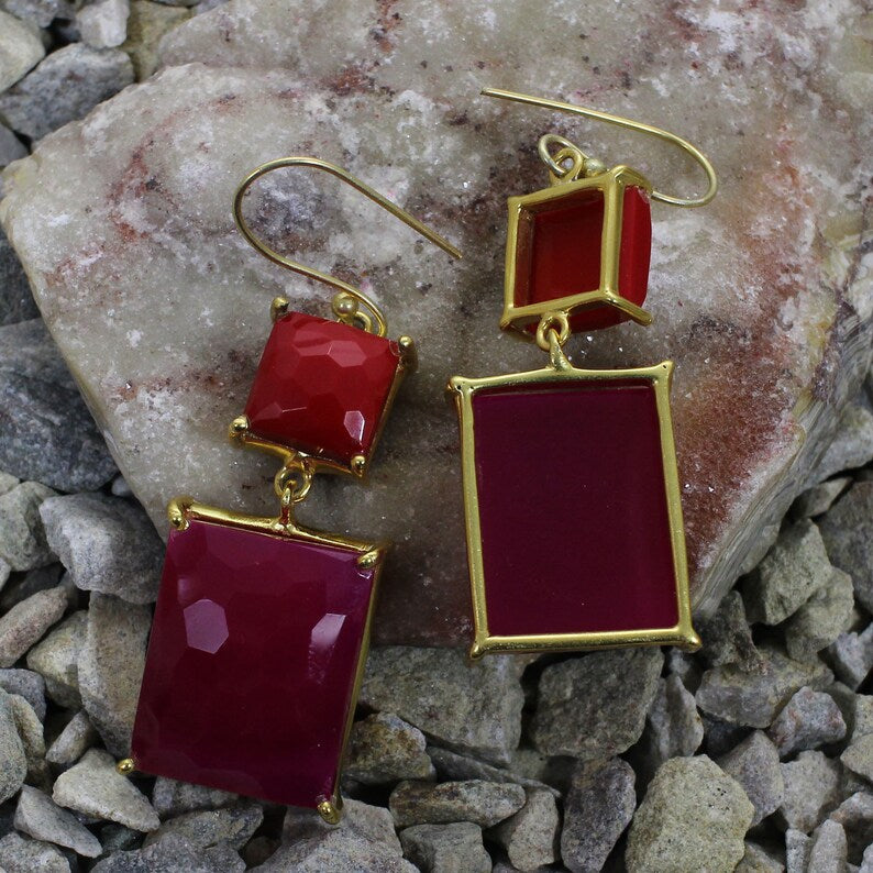 Fuchsia Chalcedony & Red Coral Multi Stone Earrings