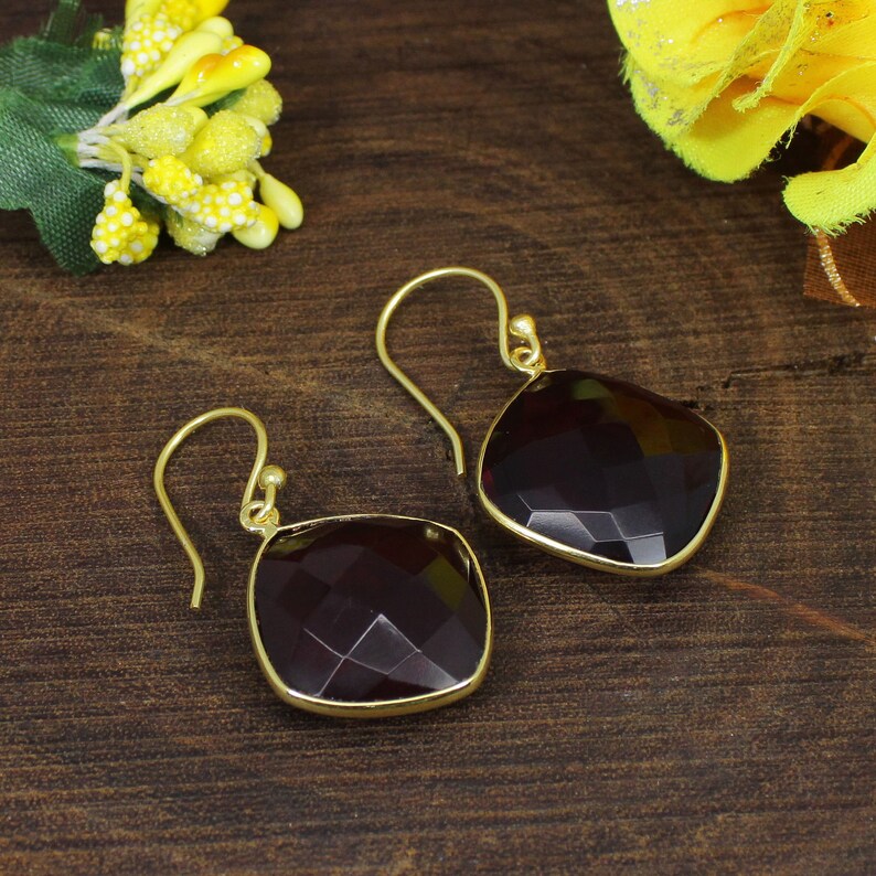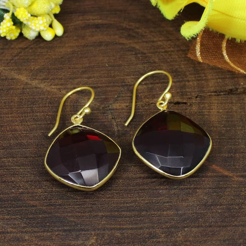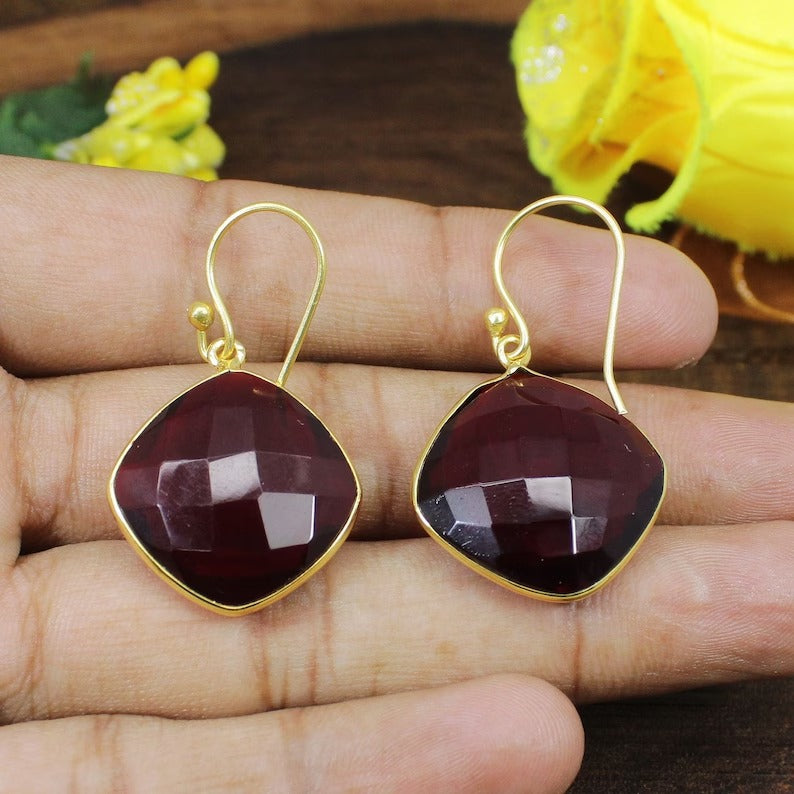 Garnet Hydro Gemstone Gold Plated Brass Earrings